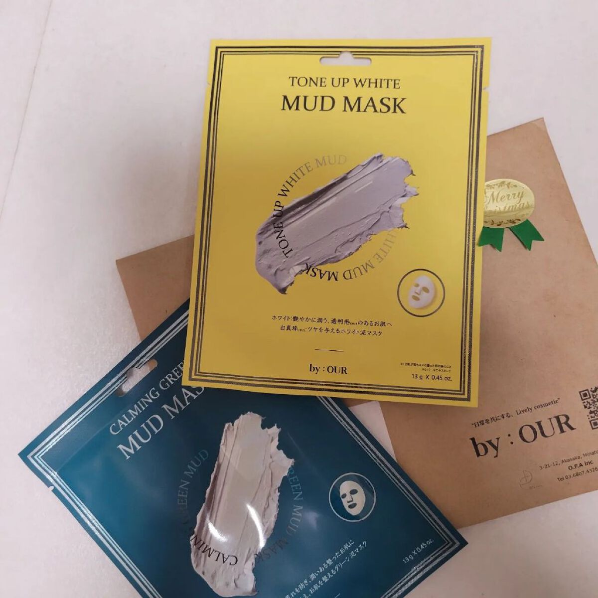 BTS使用💜泥パック3種類by:OURのMUDMASK💚green🖤black🤍white泥をのばして塗るのではなく、顔の上部分と、下部分に分かれた、シート状になっています。20~30分で、乾燥してきたら、ゆっくり外して、洗い流します。泥パッ...