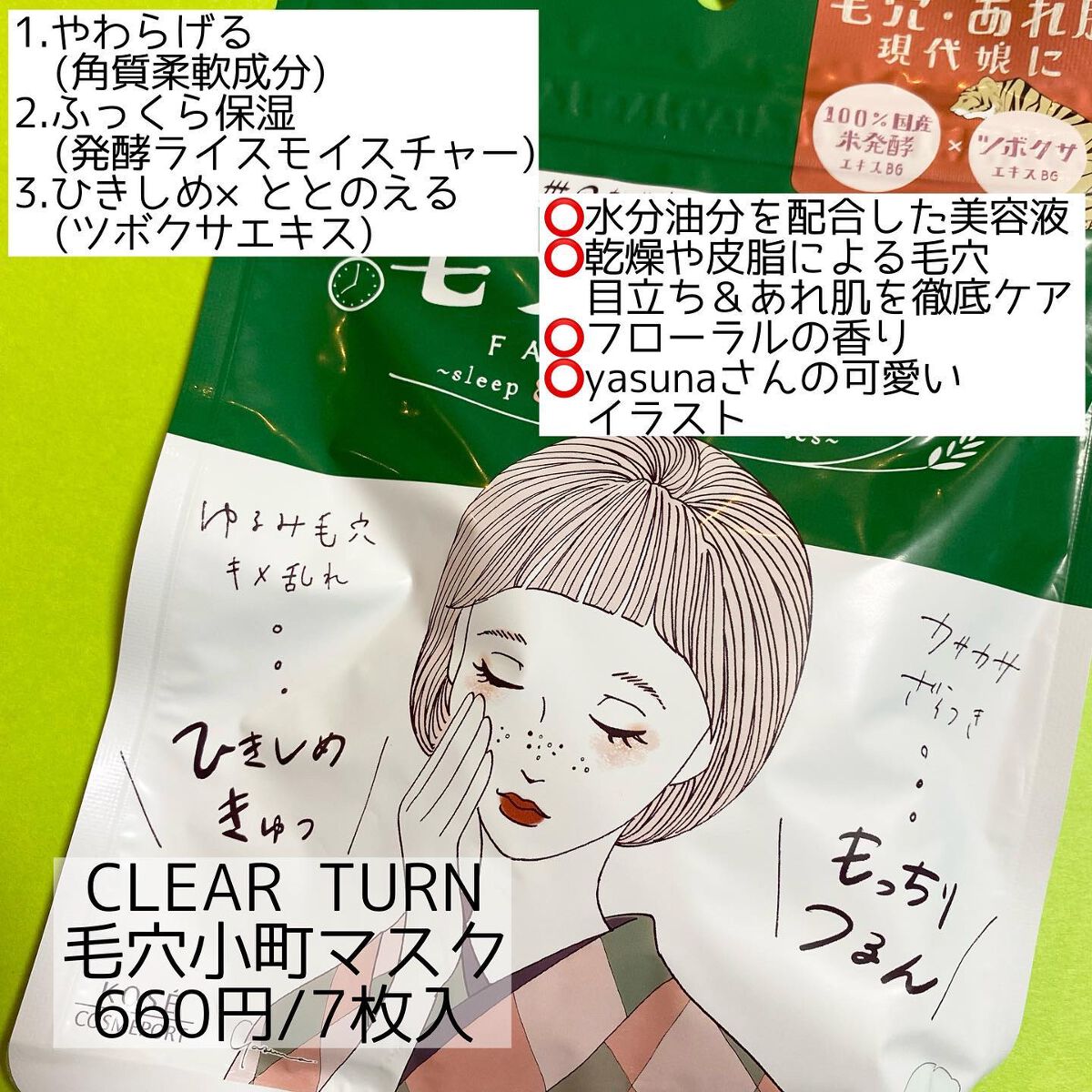 クリアターンうるうるBOMBマスク7枚入り¥660パッケージ可愛い❤️😍イラスト可愛い💕💕パックシート8分で良いから時短できるし保湿力もよかった。シートも厚くて凹凸あって角質ケアもできる。#うるうるbomb#ごめんね素肌クリアターン#毛穴小町...