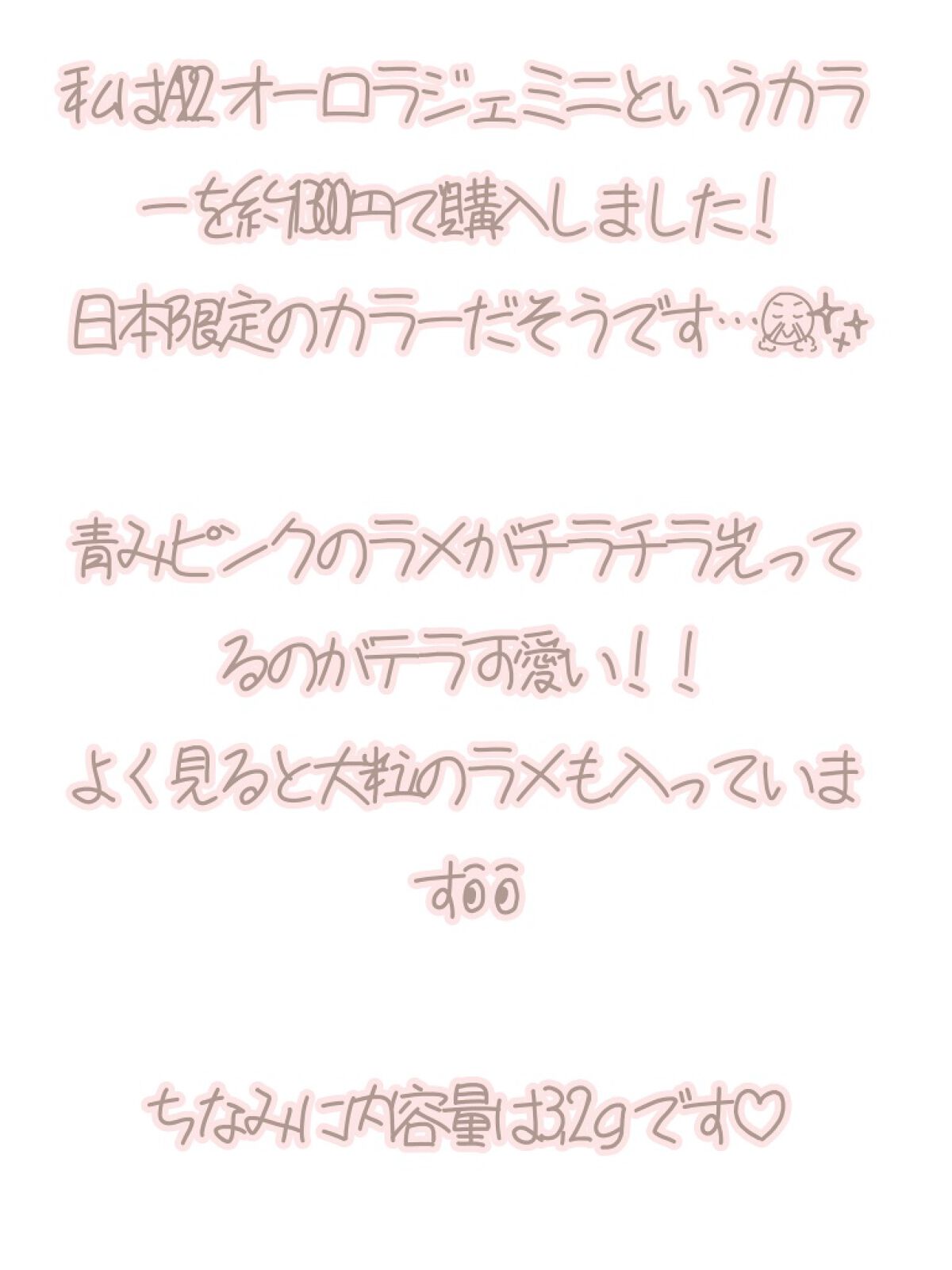 - <A2 ロゼヴァーゴ> 水、PET、アクリレーツコポリマー、グリセリン、ホウケイ酸(Ca/Al)、TEA、酸化チタン、フェノキシエタノール、マイカ、PG、エチルヘキシルグリセリン、酸化スズ、酸化鉄、カルミン <A6 ホワイトカプリコーン> 水、PET、アクリレーツコポリマー、グリセリン、TEA、フェノキシエタノール、PG、エチルヘキシルグリセリン <A15 クリームエアリーズ3.2g> 水、PET、アクリレーツコポリマー、グリセリン、TEA、酸化チタン、フェノキシエタノール、マイカ、PG、エチルヘキシルグリセリン、酸化鉄 <A20 オパールリブラ> 水、PET、アクリレーツコポリマー、グリセリン、PG、ホウケイ酸(Ca/Al)、TEA、酸化チタン、フェノキシエタノール、マイカ、酸化鉄、酸化スズ、エチルヘキシルグリセリン <A22 オーロラジェミニ> 水、PET、アクリレーツコポリマー、ホウケイ酸(Ca/Al)、グリセリン、PG、TEA、酸化チタン、フェノキシエタノール、酸化鉄、酸化スズ、エチルヘキシルグリセリン
