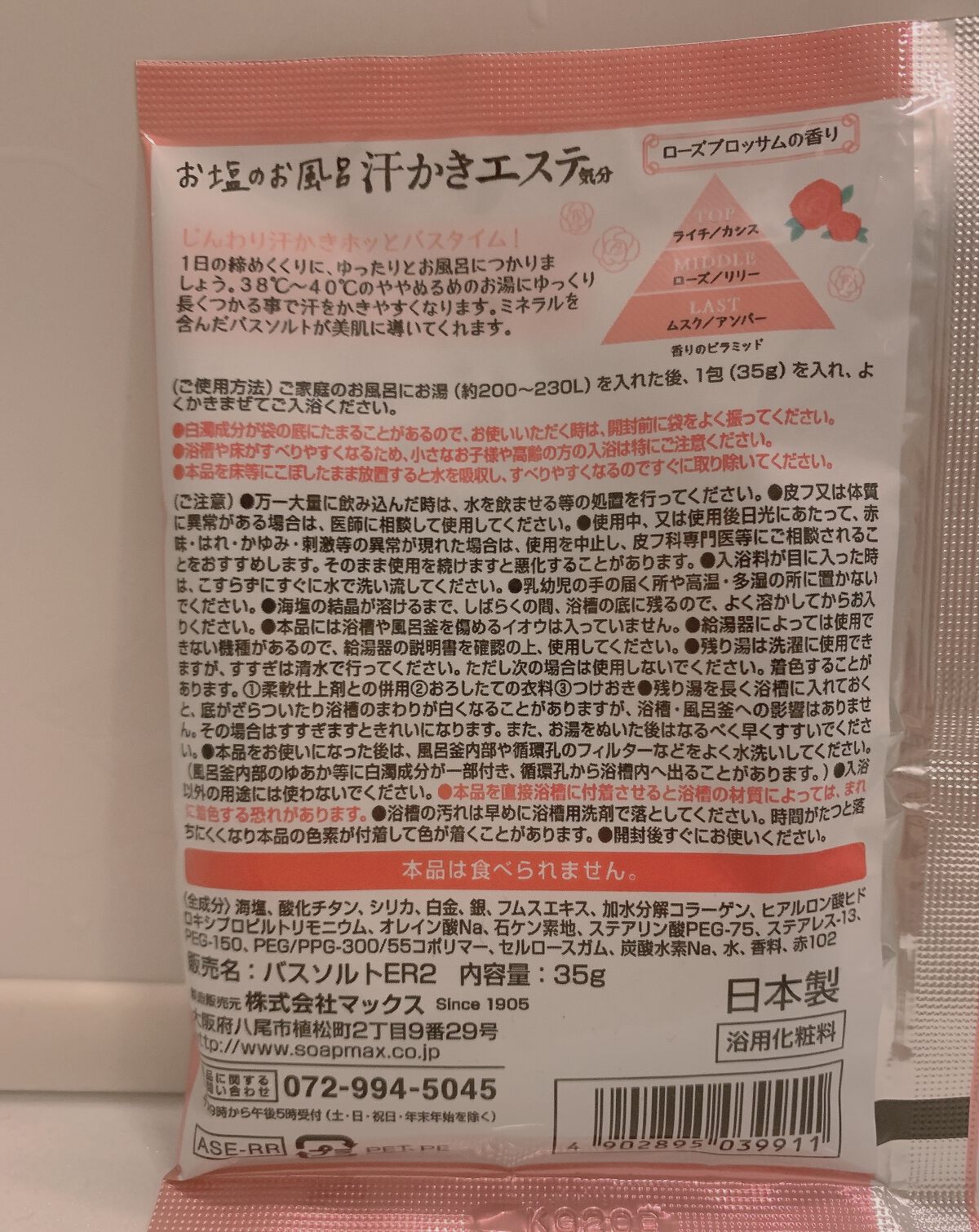 商品詳細情報マックス 汗かきエステ気分 スキンケアローズ