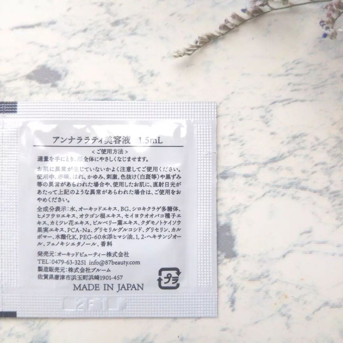 グラデーションになっている入れ物が可愛い〜♡♡ 胡蝶蘭では珍しい香料を持つアンナララティという品種を製品名にしたそう! 希少かつ保湿力抜群な100%国産胡蝶蘭からオーキッドエキス(保湿)を抽出し、30%配合した高濃度美容液! 透明でとろみのあるテクスチャーで肌馴染みが良く、しっとりした使い心地です!