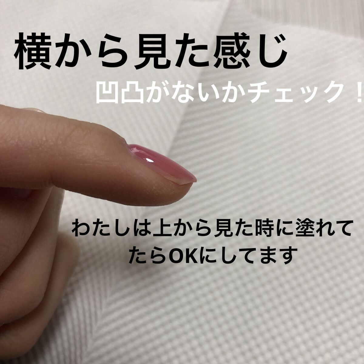 ✔️ベースコート こだわりはないですが、薄いカラーを使うときは透明のベースコートを使用しています。 今回はキャンメイクカラフルネイルズNBC ベースコート(薄いぴんく)を使用しています。 ✔️カラー1回目(基本的に私は2回塗ります) 液は少量で、かすれてもいいので全体に塗ります。 ✔️カラー2回目 液は気持ち多め。ハケの跡が残らないくらいように気をつけて塗ります。 ✔️トップコート 超愛用品ジェルボリュームトップコート これでもかってくらいたっぷり塗ります。 ジェルみたいにぷっくり感をもっと出したかったらトップコートの二度塗りもありですが、わたしはあまり厚すぎるのも乾きぐ遅くなってしまうのでトップは1回にしています♡