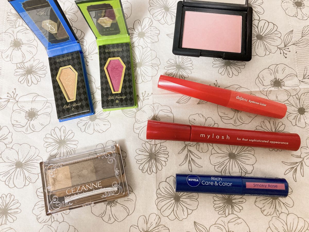 全体的に発色は綺麗。見たまんま。 低価格でこれはありがたいねぇ。 粉飛びもせず、汗かいたりしない限りは朝から夕方まで色はしっかり持ってくれている。 実際強い! 赤をベースに黒を締め色に使うと楽しいですぞ。 リリア 私好みのローズ。 単品で瞼に指でスーーッとするだけでかっこいい。締め色にローズブラウン使ってもいいしこれを締め色にしても良い、なんにでも使える。愛。好き イデア (´-`)oO(なんでこんな色なんだろう…) ベースカラー。締め色何でも会う。陰キャのくせに万能で誰にでも合わせられるとか最強か? レオナ 綺麗な緑。 キラキララメが素敵。使いにくい色だけど、目尻にちょいっと入れると良きですぞ。 ルーク レオナ同様のラメラメ緑。 レオナより青みがある?使い勝手はレオナと同じ
