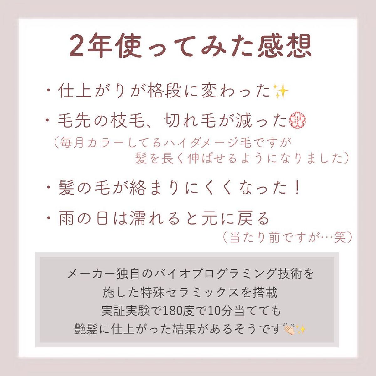 ![ヘアビューロン4D Plus[ストレート]/Bioprogramming/ストレートアイロンを使ったクチコミ(3枚目)](https://cloudflare.lipscosme.com/image/2025-05-08-d14ba1ff5401d15eddd68e59.png?auto=avif%2Cwebp&fio=1&orient=1&width=430)