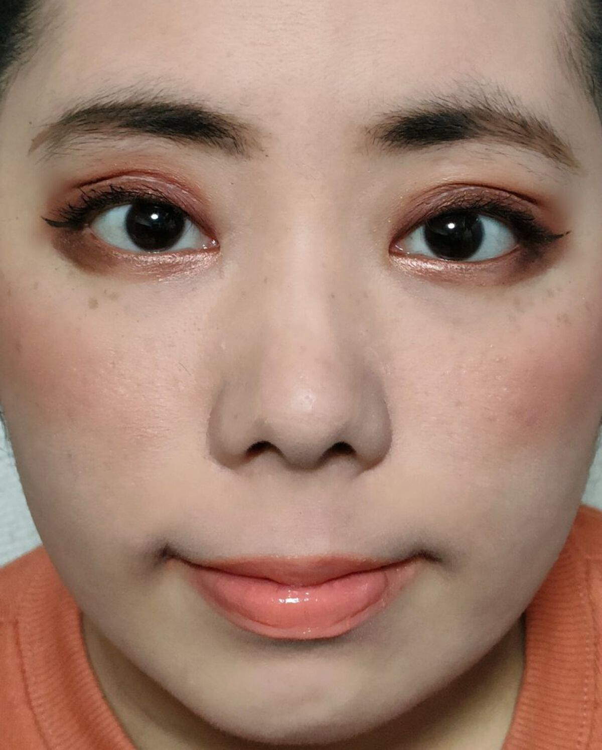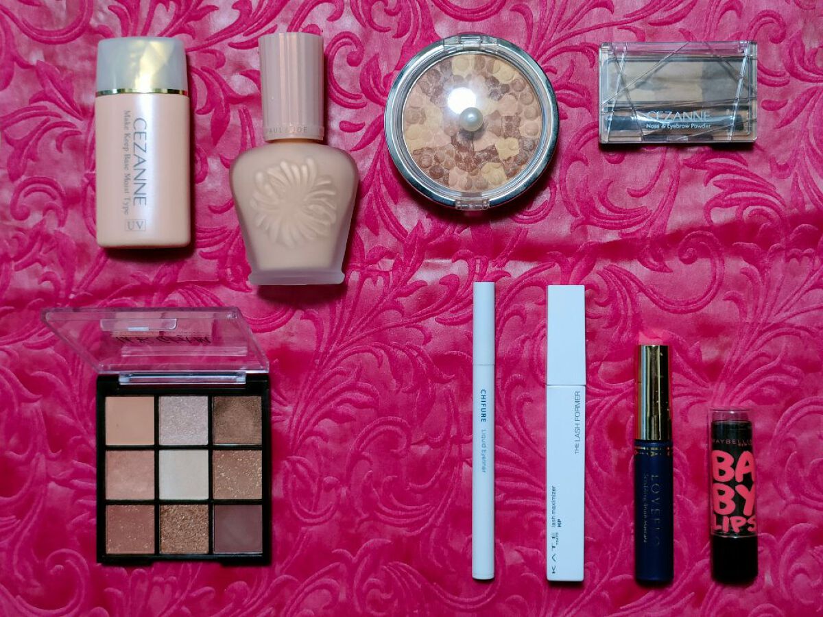 アリィー ニュアンスチェンジUV ジェル RSを、顔全体にまんべんなく塗ります。 RMK RMK ジェルクリーミィファンデーション 103を、顔全体にまんべんなく塗ります。 ジョンソンベビー ジョンソン ベビーパウダーを、顔全体にまんべんなく軽くはたきます。 THE BODY SHOP bronze shade warm glowを、両頬に塗ります。 KATE リフレクトミラーアイズ BR-1の締め色を、眉毛全体にまんべんなく塗ります。 URGLAM UR GLAMBLOOMING EYE COLOR PALETTE 01を、使用しました。 ちふれ リキッド アイライナー 筆ペンタイプ BK30 ブラックを、塗ります。 CEZANNE エアリーカールマスカラを、まつ毛全体にまんべんなく塗ります。 MAYBELLINE NEW YORK コロッサルボリュームエクスプレスを、まつ毛全体にまんべんなく塗ります。 MAYBELLINE NEW YORK SPステイ マットインク 135を、唇全体にまんべんなく塗ります。