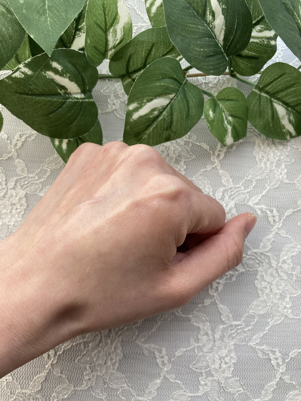さらさらで伸びが良いテクスチャー。 肌への密着感もあって、ピンクベージュの色みが毛穴のカバーとほんんのりトーンアップも。 クリームのようなテクスチャー。 肌にのせすぎると白っぽくなるので、少しずつ伸ばすのが◎ なめらかテクスチャー。 細かいパールが入ってますが、ギラギラしたりもなく自然な感じ。