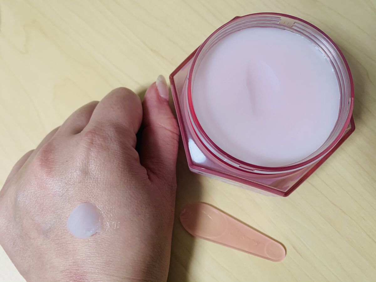 | 手のひらを軽くこすり合わせるだけで 乳液みたいに滑らかになる。 その状態で顔に広げると すぐにメイクに馴染みます。 | 詳細を見る | |
