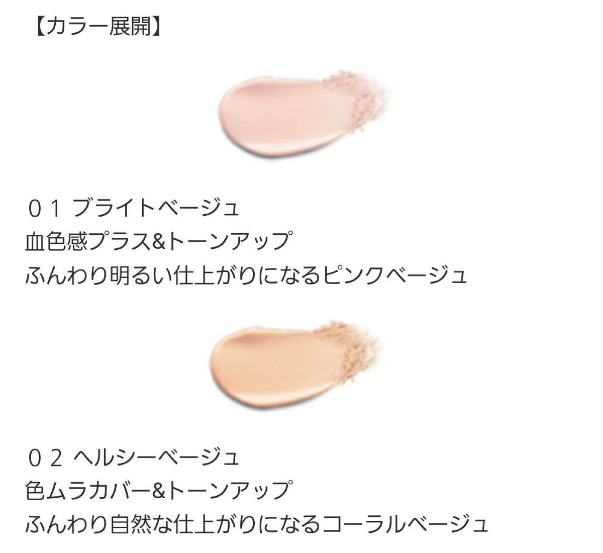 - <01 ブライトベージュ> 水、ジメチコン、メトキシケイヒ酸エチルヘキシル、エタノール、PEG-12ジメチコン、ポリシリコーン-9、カプリリルメチコン、トリシロキサン、水添ポリイソブテン、アスナロ枝エキス、BG、(アクリレーツ/ジメチコン)コポリマー、酸化チタン、酸化亜鉛、酸化鉄、水酸化Al、含水シリカ、タルク <02 ヘルシーベージュ> 水、ジメチコン、メトキシケイヒ酸エチルヘキシル、エタノール、PEG-12ジメチコン、ポリシリコーン-9、カプリリルメチコン、トリシロキサン、水添ポリイソブテン、アスナロ枝エキス、BG、(アクリレーツ/ジメチコン)コポリマー、酸化チタン、酸化亜鉛、酸化鉄、水酸化Al、含水シリカ、タルク <01 ブライトベージュ 限定デザイン(ミモザ)> 水、ジメチコン、メトキシケイヒ酸エチルヘキシル、エタノール、PEG-12ジメチコン、ポリシリコーン-9、カプリリルメチコン、トリシロキサン、水添ポリイソブテン、アスナロ枝エキス、BG、(アクリレーツ/ジメチコン)コポリマー、酸化チタン、酸化亜鉛、酸化鉄、水酸化Al、含水シリカ、タルク <02 ヘルシーベージュ 限定デザイン(ミモザ)> 水、ジメチコン、メトキシケイヒ酸エチルヘキシル、エタノール、PEG-12ジメチコン、ポリシリコーン-9、カプリリルメチコン、トリシロキサン、水添ポリイソブテン、アスナロ枝エキス、BG、(アクリレーツ/ジメチコン)コポリマー、酸化チタン、酸化亜鉛、酸化鉄、水酸化Al、含水シリカ、タルク