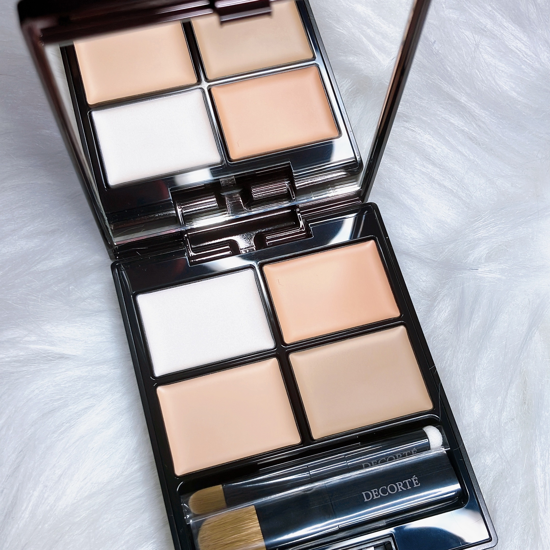プロも御用達!万能コンシーラーパレット コスメデコルテ トーンパーフェクティング パレット 00ライト 4,950円(税込) やわらかくなめらかでしっとり、すぅ〜とのせられる ピタッと密着してくれてヨレにくいことに感動🥹 特に長井かおりさんがドラえもんチップと呼んでいた丸い白いチップがなんでも隠してくれて超優秀☺️
