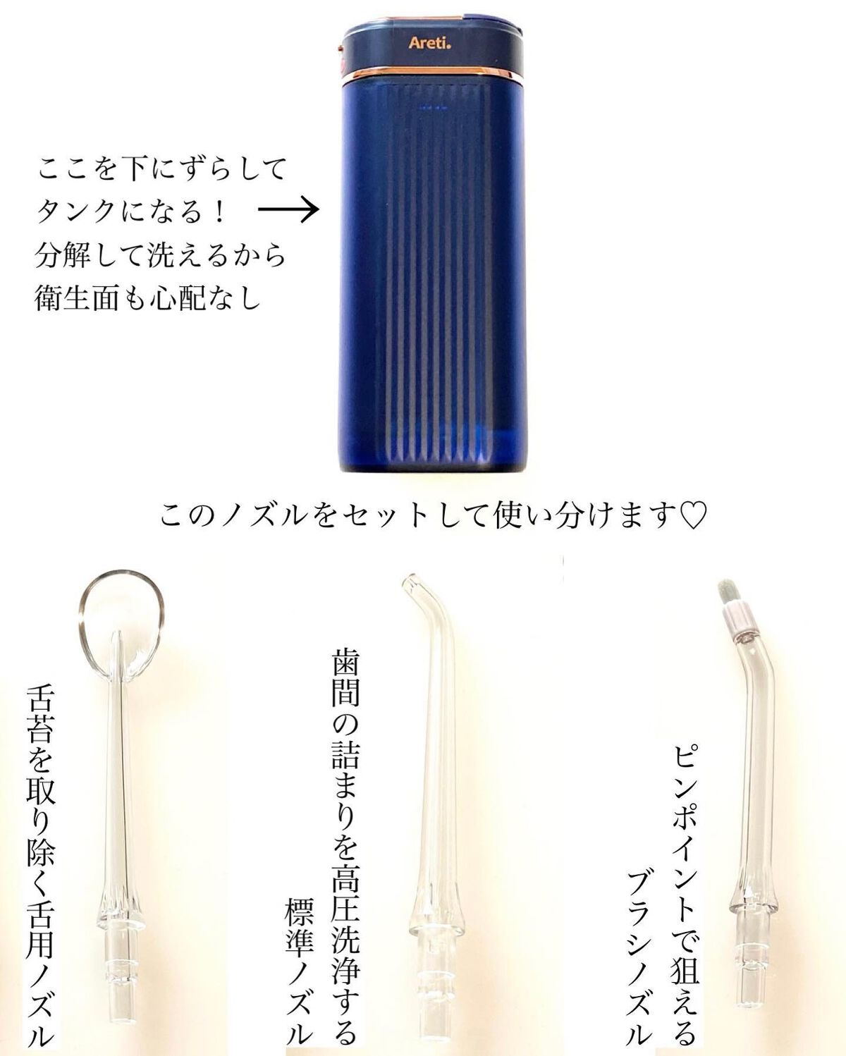 取りにくいプラーク(歯垢)を 最大99.9%除去! ウォーターフロスの水圧で、 同時にW効果! コードレスでも使用できるので、 持ち運びにも便利🧳 高速振動しながら(歯垢をかき出す!) 左右に細かく揺れる(歯垢をはらい落とす!) 作動が特徴です🙌 磨き残しが出やすい歯の根本&隙間を中心に 丁寧に当てていきます。 USBで充電できるから コードレスでも使えるので、 旅行など外出先にも便利です🧳