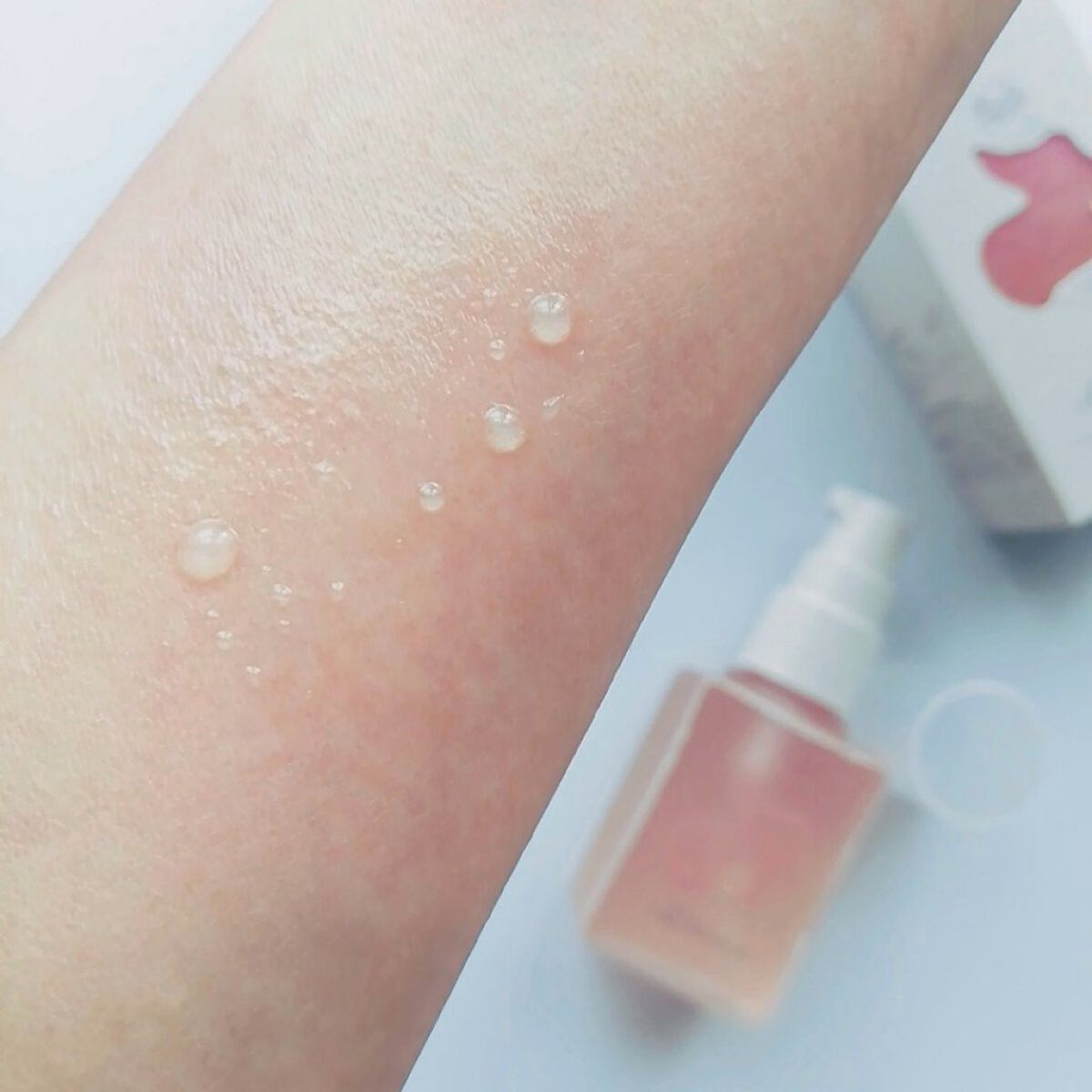 まるで懐かしい景色を閉じ込めた、タイムカプセルのような美しい2層の美容液オイル。 素敵なイラストの箱を開けていくのも楽しくわくわくしてしまいました。 ピンクのグラデーションがとても綺麗なオイルです。 オイル層と美容液層の比率が5:5のしっとりタイプ。 2層式なのでよく振ってから使います。混ざると優しいベビーピンクに。 ほんのりとろみのあるテクスチャー。重さを感じないオイルでさらっと心地よく使えます。 陽だまりの花と果実の香りは甘すぎないフローラル系でとても優しい香りです。