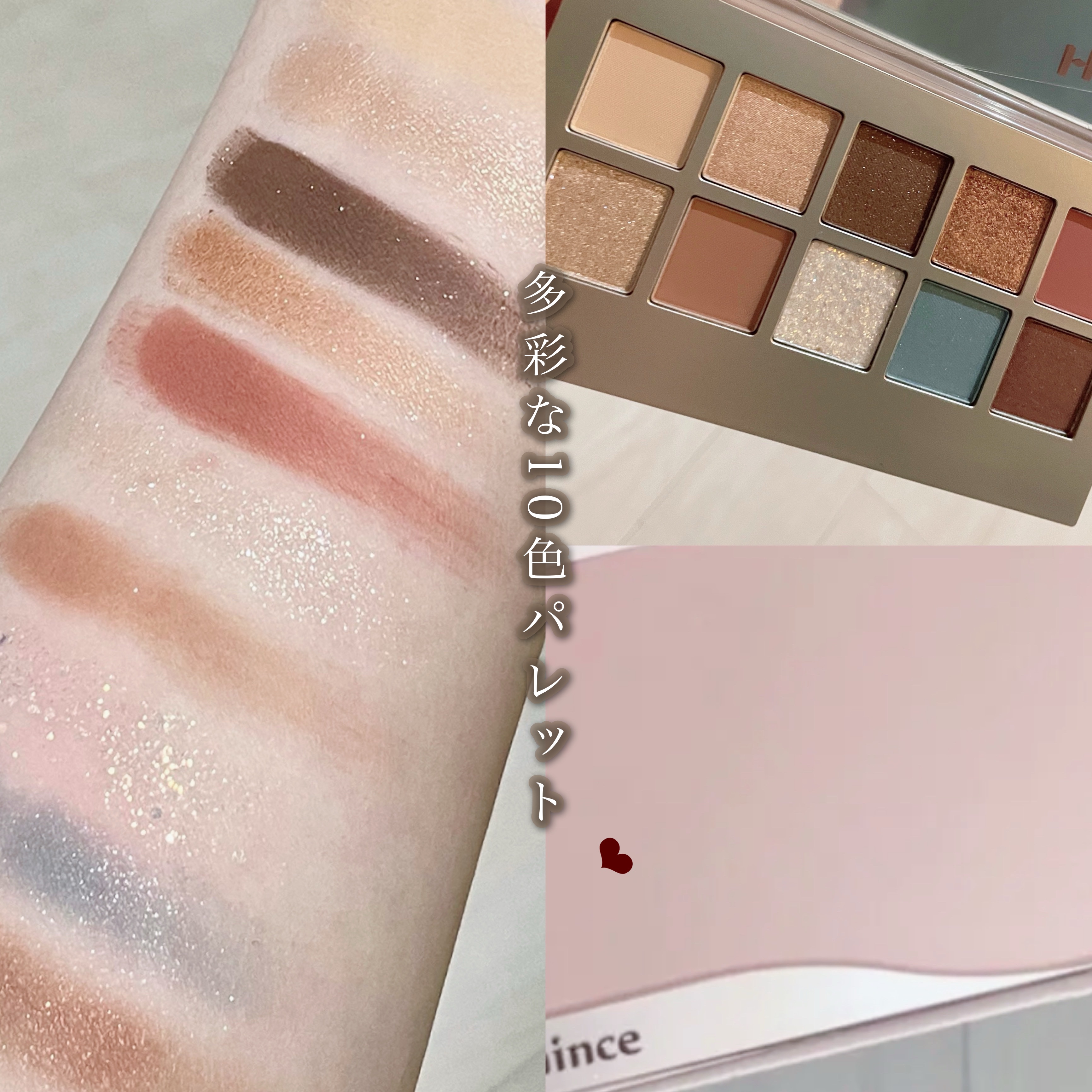デパコス並みの高級感が溢れるラメ✨ ラメ好きさんにはおすすめ!安っぽくない高級感のあるラメ感のアイシャドウ✨ラメも細かいものから大きいものまで。 hinceと言えば、パッケージ。外箱から本品までパッケージがとても素敵で気分が上がります 値段が少しお高めですが、Qoo10のメガ割のときには20%割引になるので、狙っている人はこの機会に!