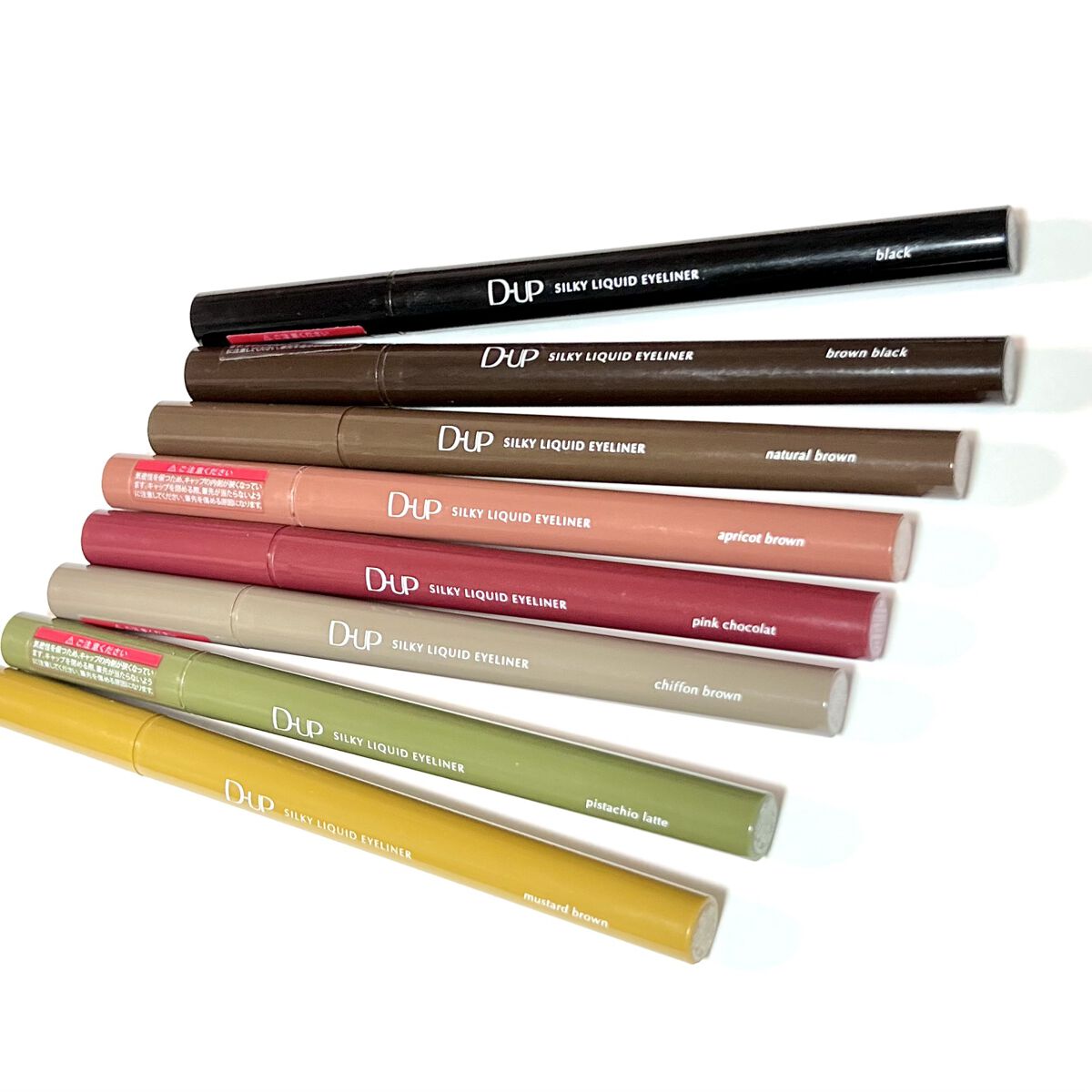 - 筆先までずっとなめらか、目尻で感動するリキッドアイライナー。 必要な量が肌にのる新設計で、まぶたの上をすべるような、滑らかな描き心地。しなやかでコシのある筆が、筆圧のコントロールを容易にし、太いラインも細いラインも思い通りに仕上げます。水、汗、涙に強いウォータープルーフタイプなのに、通常洗顔で簡単オフ。肌に色素が残らない顔料を使用。5種類の美容液成分を従来品の200%配合し、メイクしながら目元ケアまで。 ●ブラウンブラック ※2020年9月12日 バラエティショップ先行発売 ●漆黒ブラック ※2020年12月頃発売予定 ●ナチュラルブラウン ※2020年12月頃発売予定 ●シフォンブラウン 「毎日メイクに透明感と抜け感」 ブラウンでも、グレーでも、ベージュでもないニュアンスカラー。 自然な印影で素の目元を際立て、頑張りすぎない、ふんわりとした目元に。 ●アプリコットブラウン 「じゅわっと血色感。 肌に馴染むおしゃれカラー」 温かみのあるアプリコットがじゅわっと滲む血色感を目元に演出。 肌馴染みが良いので、カラーライナーに抵抗がある方もブラウンの延長線上で楽しめる、使いやすい色味です。 ”ちょっとオシャレ”な空気感を演出するカラー。 ●ピンクショコラ アイライナー 「ピンクが溶け込む濃厚ブラウン」 肌馴染みが良く、目元にじんわり血色感をプラス。 さりげなく女性らしさが加速するようなカラー。 ●ピスタチオラテ (2022年7月29日(金)発売) 「“目尻”に抜け感アクセント」 肌に馴染むのに映える絶妙なグリーン。 トレンドカラーに“くすみ”と“抜け感”をプラスしたまろやかな発色。 ●マスタードブラウン 「“イエロー”が揺れる、大人の洒落色」 (2022年7月29日(金)発売) まるで太陽のような暖かさを感じる新しいブラウン。 ほんのり感じるイエローでメイクが一気に垢抜ける稀有な色。 ●シフォンピンク(2023年2月10日発売) 「ふんわり柔らか"まろみピンク"」 甘くなりすぎない青みニュアンスで目元の透明感UP。 目元を引き締め、ピンクメイクにありがちな腫れぼったさを解消。 ●ミルクカプチーノ(2023年4月21日発売) まろやかな深みの“優しい締め色” どんなメイクにも合わせやすいカラー。 自然な陰影でさりげなく目幅を拡張します。 ●グレーカシミア(2023年10月1日発売) ブラウンがほんのり溶け込んだ、暖色グレー まろやかな発色で、パーソナルカラーを問わず肌に馴染む 目元の陰影になりすまし、抜け感と目力を欲張りに叶える ●ダークフィグ(2024年6月1日発売) するする”なめらか。描きやすいのに、落ちにくい。 クッキリ可愛いほの甘ダークブラウン ●ピーチモカ(2024年8月1日発売) ふわっと自然に盛れる“桃色ブラウン” ほんのり血色感で目元にうるみ感を演出 ●スターダストブラウン(2024年12月11日発売) キラッと繊細に輝く''星屑ブラウン'' 透け感のあるダークブラウンの色味とラメの輝きが、目元に艶のある立体感を演出 ●チャコールモカ(2025年4月10日発売) 目元を締める''深みグレージュ'' 黄みや赤みに偏りすぎない絶妙な色設計で、自然に目元を強調