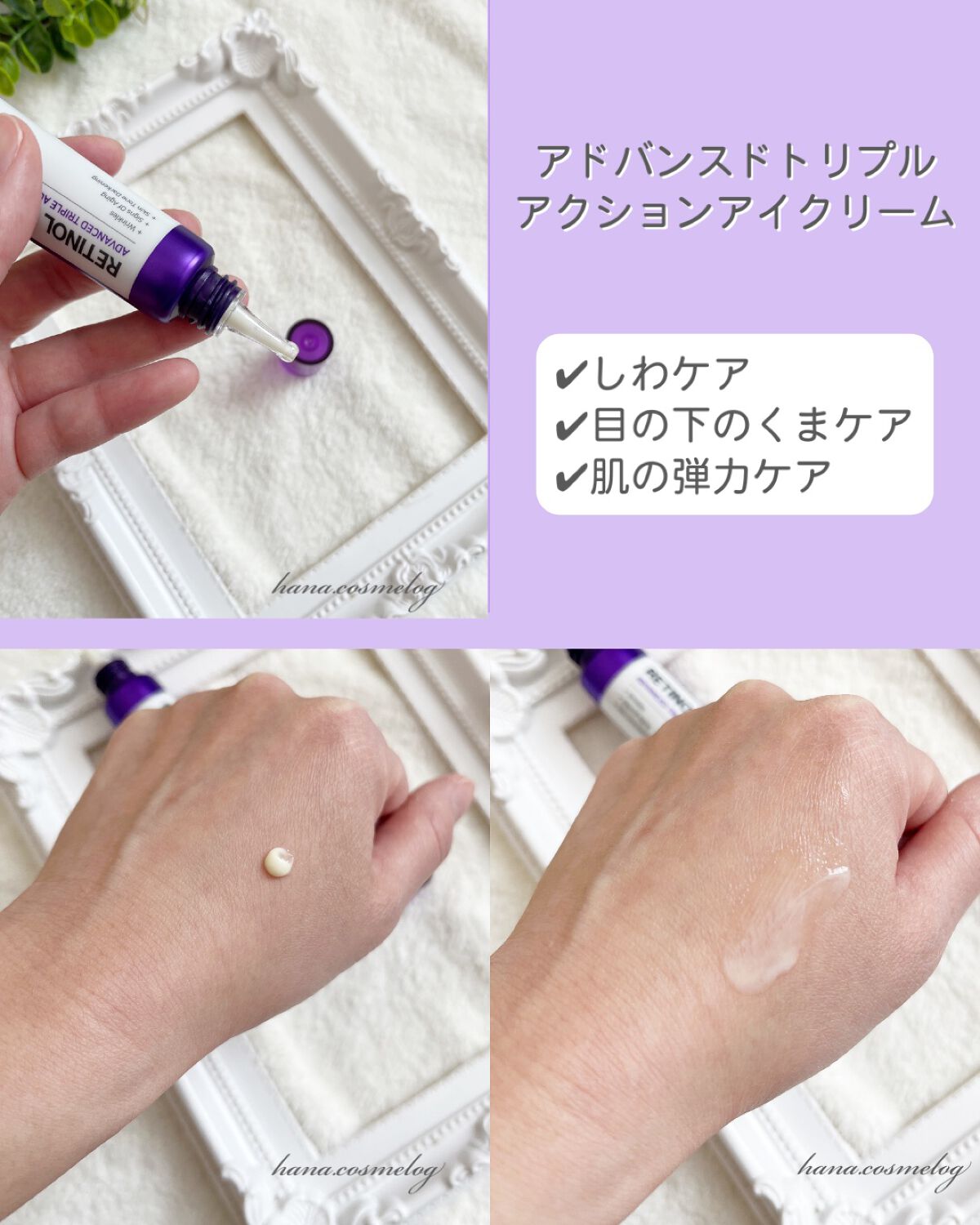 レチノール&グルタチオン配合で、暗い目元を明るくしてくれるアイクリーム! くまを集中ケア!!しわをスポットケアできる! 目元のクマやシワ,目元を明るくケア ブライトケアもしてくれるので目の周りもワントーン明るくなったって言われます。