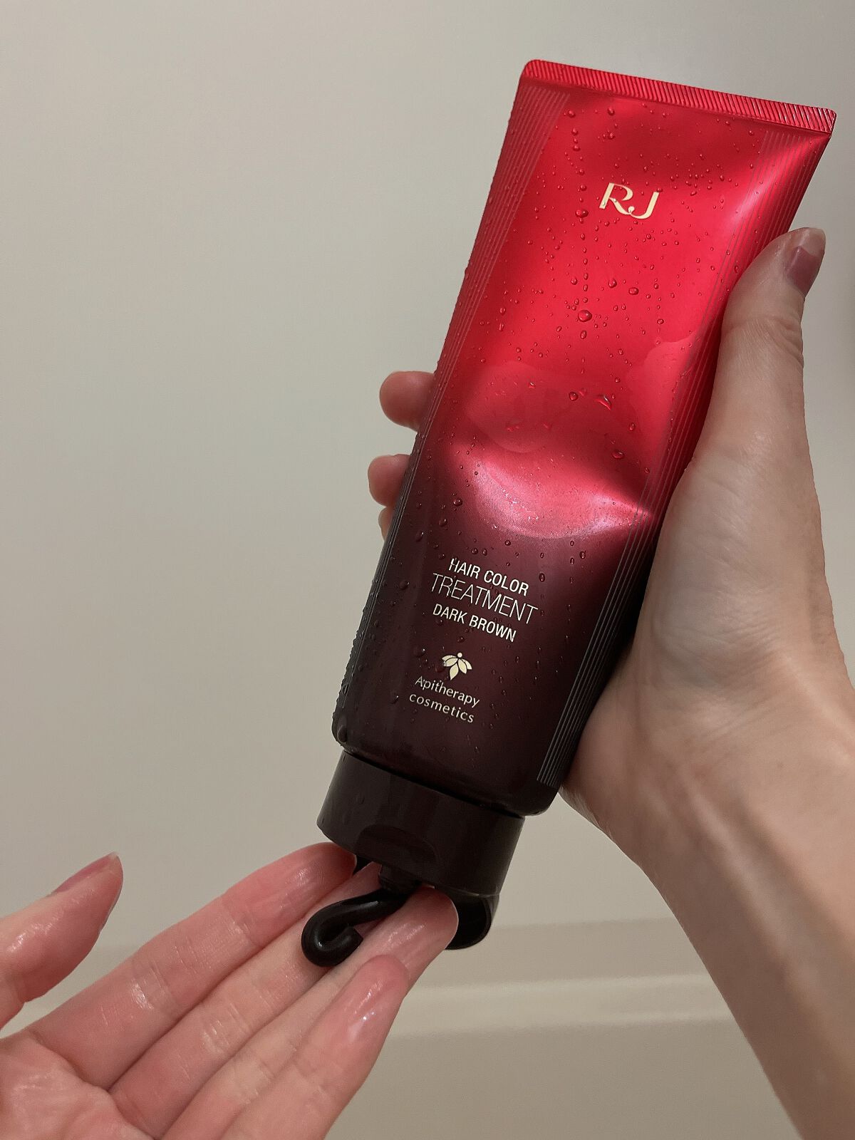 山田養蜂場の、アピセラピーコスメティクスよりRJヘアカラートリートメント ご紹介✨️ 色はダークブラウン 使い方は簡単で、シャンプー後、ビニール手袋して手に取り白髪部分に塗ってちょっと放置。 ヘアカラーなのにトリートメントも出来るのはポイント高め 白髪染めでお悩みの方は是非(*^^*)