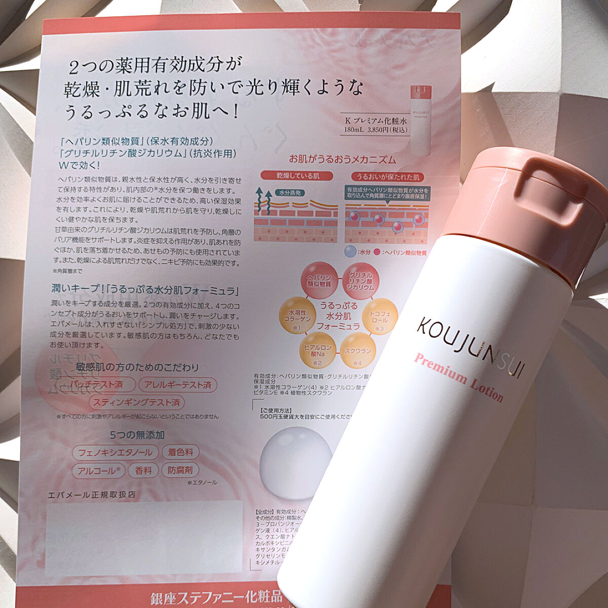 エバメール🩷『光潤水プレミアム化粧水』(医薬部外品)エバメール様からキャンペーンにて素敵な晴雨兼用傘とともに…🎁いただきました🐦ありがとうございます💗🪷敏感肌〜普通肌にも◎乾燥・肌荒れ対策に!(ゆらぎ肌時など…)水分とバリア機能をサポートして...