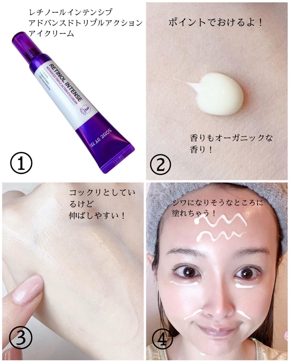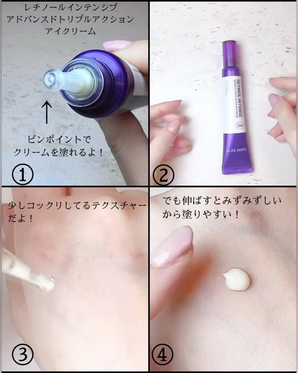 サムバイミーは、トラブル肌、敏感肌に注意を注いでいるスキンケアブランド☝️ そんなサムバイミーが作った、レチノール入りのアイクリームって👀⤴️⤴️ レチノール0.1%+グルタチオン配合で、レチノール入りなのに初心者でも使いやすい😆 クリーム色の、滑らかなクリーム状テクスチャー😌 チューブの先が細く、少量も出しやすいし目元ケアしやすい⤴️