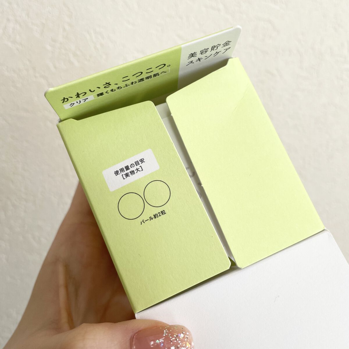 - <80g> 水、BG、グリセリン、ソルビトール、DPG、グルタチオン、シロツメクサエキス、グルコシルセラミド、サッカロミセス/コメ発酵液、乳酸桿菌/ハス種子発酵液、カニナバラ果実エキス、ローズマリー葉エキス、テトラエチルヘキサン酸ペンタエリスリチル、アクリル酸Naグラフトデンプン、カンテン、水添レシチン、コレステロール、イノシトール、ダイマージリノール酸(フィトステリル/イソステアリル/セチル/ステアリル/ベヘニル)、プロパンジオール、α-グルカン、EDTA-2Na、メチルパラベン、香料