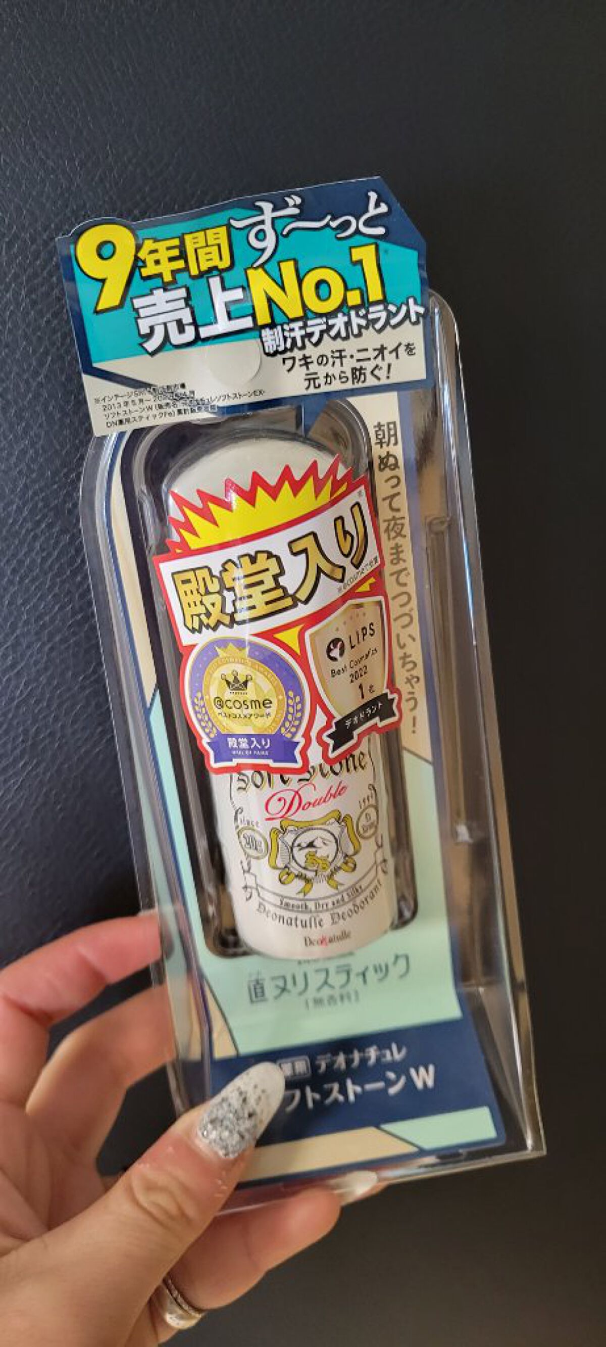 - \11年間ず~っと売上No.1*制汗デオドラント/ ワキの汗・ニオイを元から防ぐ 直ヌリスティック・無香料・アルコールフリー 天然アルム石に着目。有効成分「焼ミョウバン」を配合。 ◆◆ユーザーから選ばれる理由◆◆ ◆『天然アルム石のチカラ』に着目して、汗・ニオイを元から防ぐ! 「デオナチュレ ソフトストーンW」は、天然アルム石に着目。有効成分「焼ミョウバン」を配合し、汗・ニオイを元から防ぎます。 ◆ニオイの発生源・ワキに“直ヌリ”でしっかり密着し、朝ぬって夜まで続いちゃう! 忙しい朝でもサッとつけることができるスティックタイプで、夜まで長時間持続。 ◆すぐにサラサラ!ベタつき・白残りしにくい すぐに洋服を着ることができるので、時間のない朝にも嬉しい! ==注意== ●顔・粘膜を避け、除脱毛直後や肌に異常があるときは使用しないでください。●肌に異常が生じていないかよく注意してご使用ください。また、お肌に合わないとき、使用中に赤み、はれ、かゆみ、刺激、色抜け(白班等)や黒ずみ等の異常があらわれたときは、使用を中止し、皮フ科専門医などにご相談ください。●使用後はキャップをしっかり閉め、直射日光や高温多湿を避けて保管してください。●乳幼児の手の届かないところに置いてください。●スティックを出し過ぎて折れないようご注意ください。●衣類などにつかないようご注意ください。●本製品は残り少なくなりますと、構造上容器の底に中身が若干残ります。そのため、実際には容器に表記されております容量以上を充填しております。 販売名:DN薬用スティックFe *インテージSRI+制汗剤市場 2013年5月~2024年4月 ソフトストーンW(販売名:デオナチュレソフトストーンEX(リニューアル前処方)・DN薬用スティックFe)累計販売金額