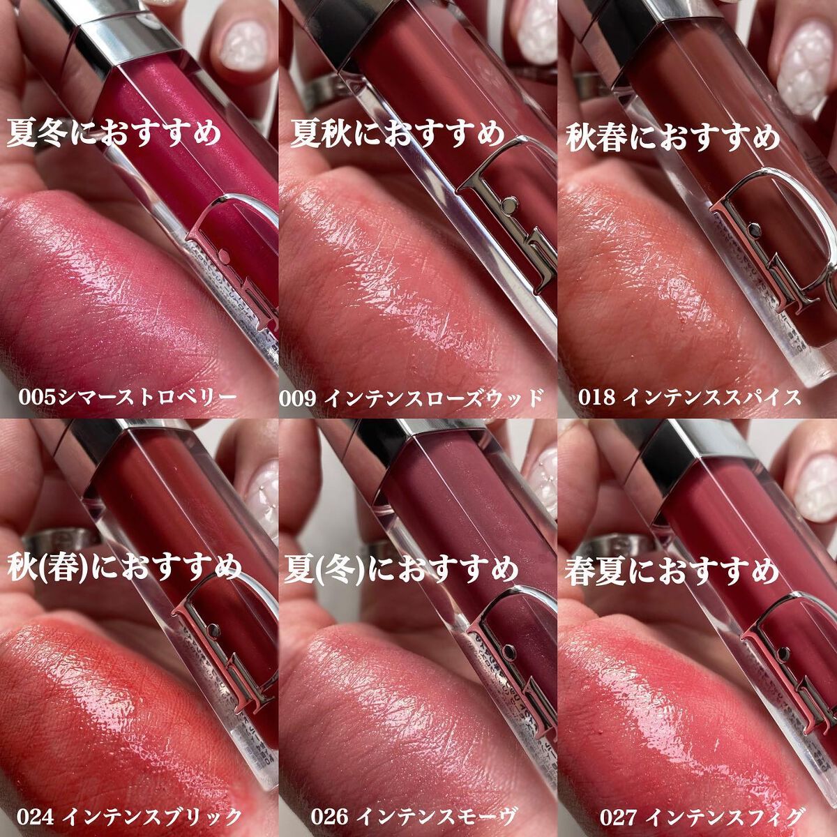 特に既にSNSでバズっていたものやバズりを確信したカラー6色をレビューしました🥺💓 輝きや高保湿のリップケア力、ボリュームアップというトリプル効果はそのままに、ヒアルロン酸とチェリー オイルが配合された自然由来の新処方に。 ヌードからモーヴ、ブリックからコーラル、そしてレッドトーンまで幅広い24色のカラーバリエーション。 そしてクラシック、インテンス、シマー、ホログラフィックという4つの質感! どれもめちゃくちゃ可愛くて全部揃えたくなっちゃう!誰でも得意なカラーが見つかるカラバリです◎ マスク生活が終わったらいち早く使いたいリップです💄