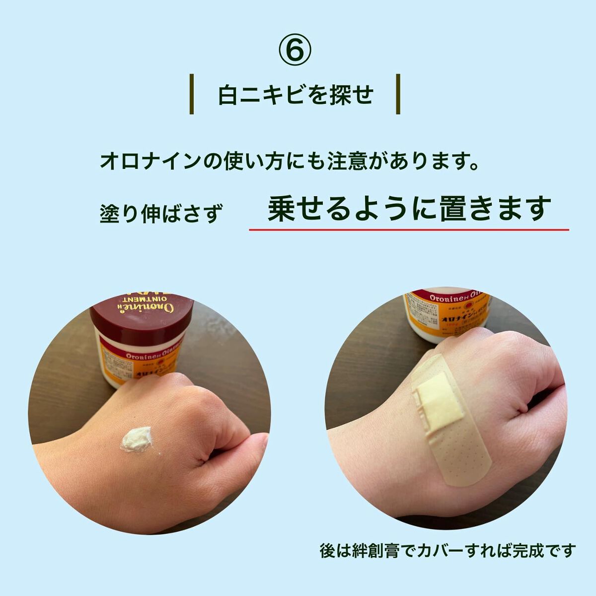- オロナインH軟膏は、殺菌効果に優れたクロルヘキシジングルコン酸塩配合の皮膚疾患・外傷治療薬です。 殺菌成分配合の軟膏が患部を覆ってケアします。 【効能・効果】 ニキビ/吹出物/はたけ/やけど(軽いもの)/ひび/しもやけ/あかぎれ/キズ/水虫(じゅくじゅくしていないもの)/たむし/いんきん/しらくも 公式ページ:https://www.otsuka.co.jp/ohn/