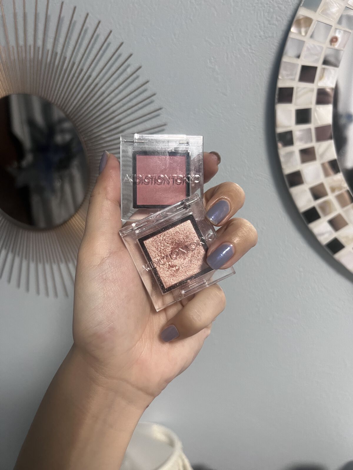 ボビイブラウンの名品ムーンストーンはベースがクリアなのでどんなアイシャドウにも合わせられるし上からトッピングするのにも向いています。 アディクションのマリアージュは2,200円でこの煌めき! 一番安いのに一番輝く、さすがです。 秋蛍は実はトッピングするとベースのシャドウを殺してしまうので目頭、下瞼などポイント使いかベースに使うのがおすすめです。