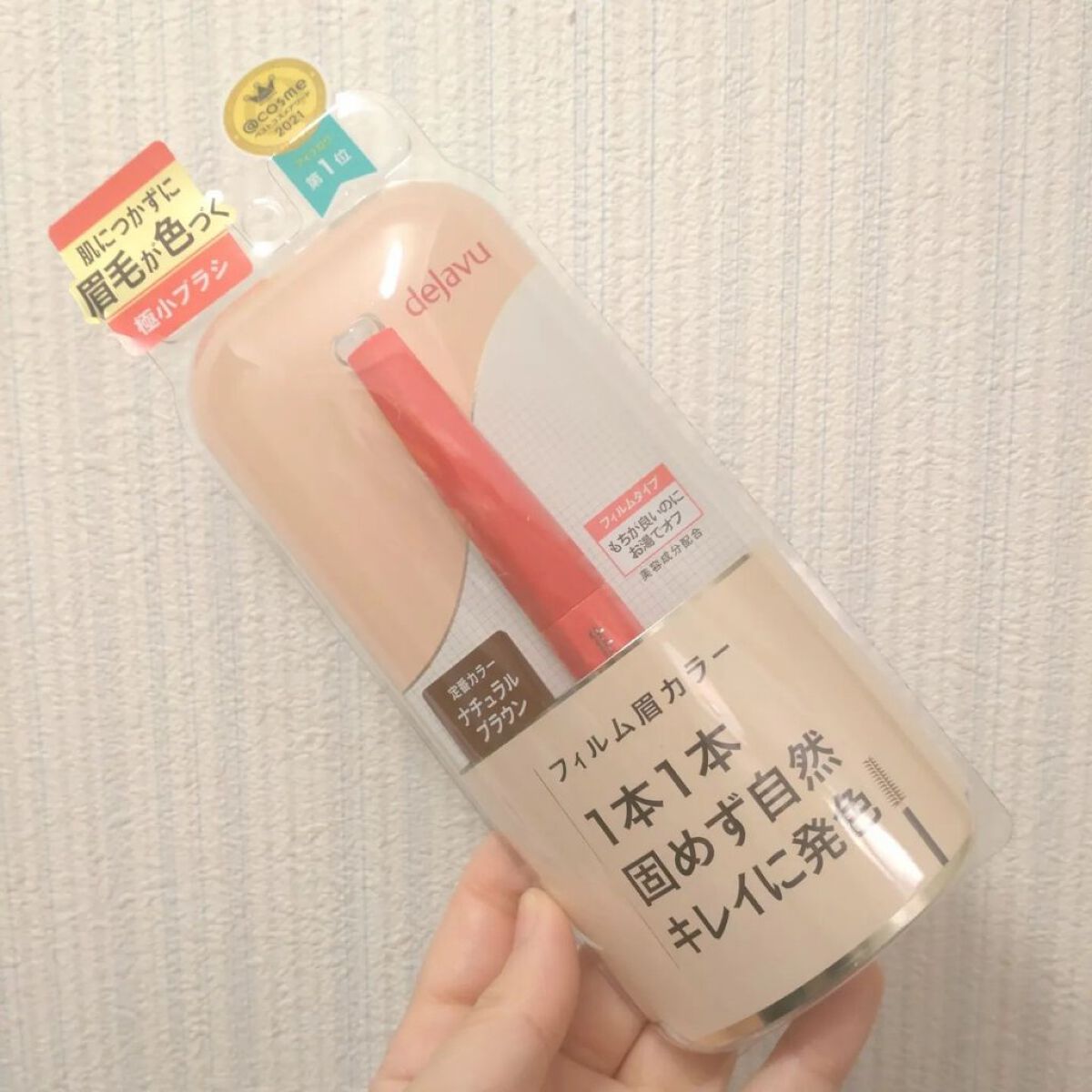 - \\25年3月定番新色モカグレージュ発売// 「フィルム眉カラー」なら眉の印象を自然にやわらげ、ふんわり質感の垢抜け眉に! 1.塗りやすい極小ブラシ ・ 先端直径3mmで、地肌に液がつきにくく根元から色づける ・余分な液がつかない設計で、ティッシュオフ不要 2.眉専用フィルム液 ・眉毛1本1本にキレイに色付き、自眉の黒さをやわらげる ・タバになったり、パリッと固まったりせず、まるで自眉のような仕上がり ・皮脂・汗・こすれに強いのにお湯で簡単オフ (※2025年9月以降、商品パッケージをリニューアル。)