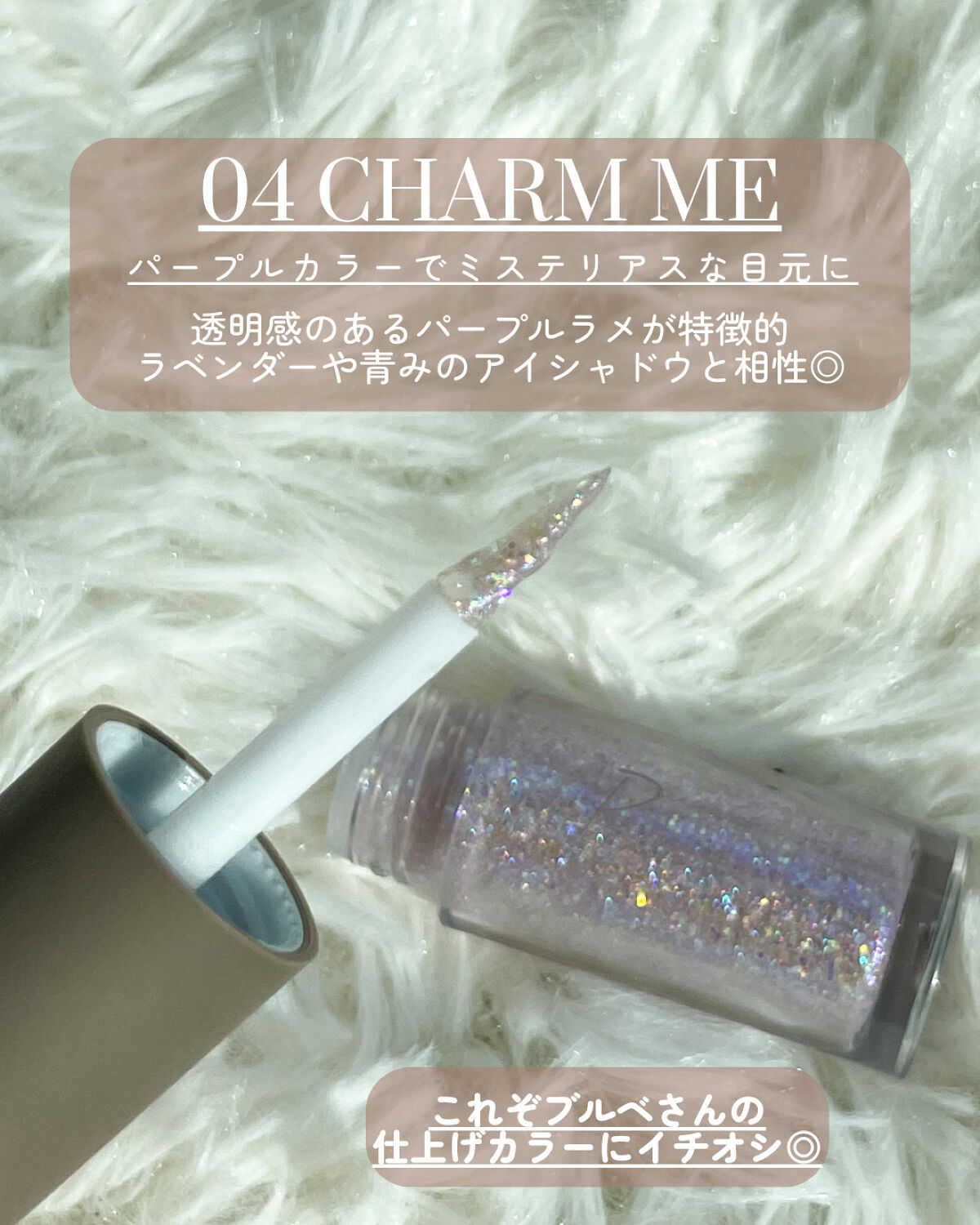 - 2021年3月15日(月)予約販売開始 さまざまな大きさのグリッターと多色ラメで、星屑のような輝 きを目元に演出するウォーターベースのラメライナー。 |角度で変わるキラキラ感 さまざまな大きさのグリッター×多色ラメが 星屑のような輝きを演出 | 発光しているようなツヤ感 パール in パウダーでツヤを演出 | 極細でしなやかなシリコンチップ 涙袋など狙ったところにも ピンポイントで使いやすい お肌への刺激が少ない 柔らかくて弾力のある アプリケーターを採用 ●保湿美容液成分:ヒアルロン酸・ ローヤルゼリーエキス配合。
