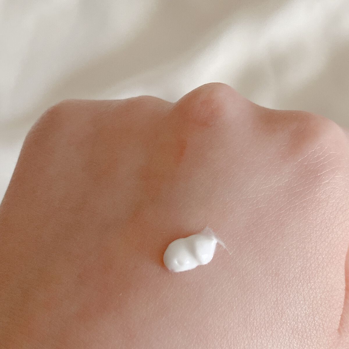 肌にうるおいを与え、明るい肌印象へ。肌をなめらかにし、なじませた直後からツヤのあるお肌へ導いてくれるそう。 目元だけでなく顔全体にも使えるとのこと。 こちらはそれよりもこってりとした印象ですが、なめらかに塗れてベタつかず、アイクリームの独特のペタペタ感がなくて使いやすく感じました。