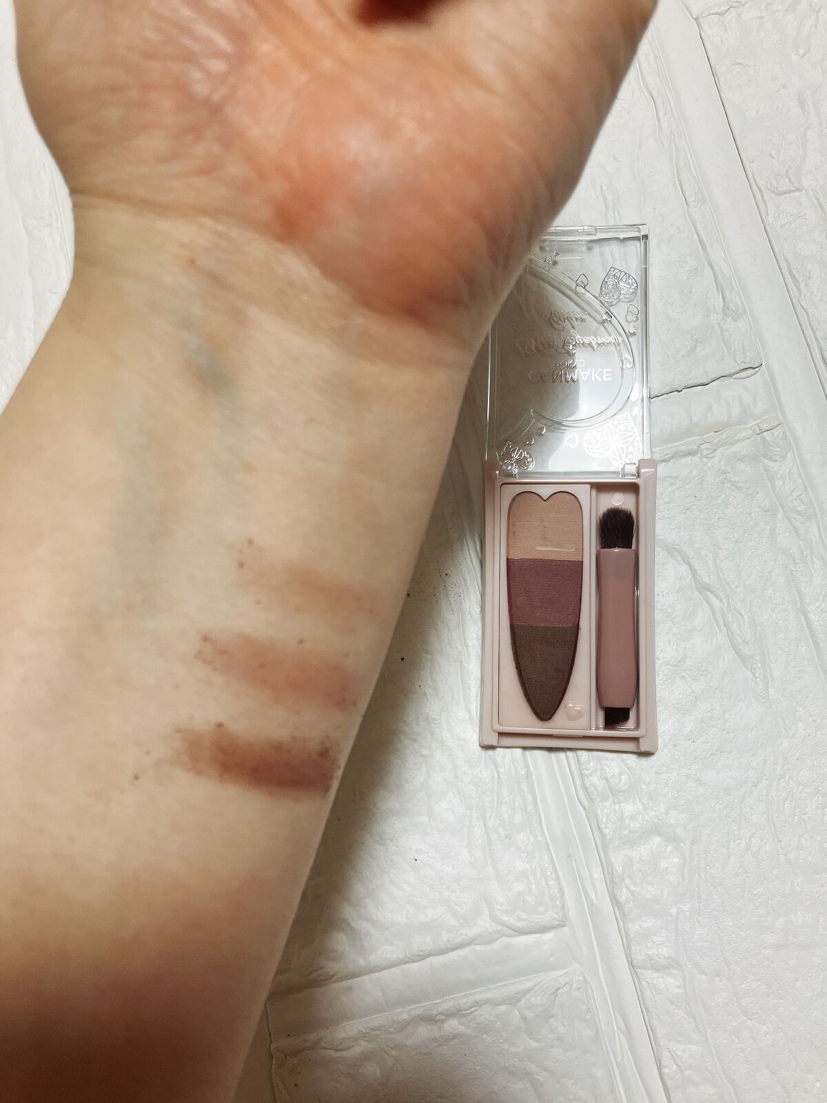 - ベーシック眉もトレンド眉も叶う!ニュアンスカラーがかわいいアイブロウパウダー カラー眉って流行っているけど難しそう…という方でも大丈夫! 3色の色味をブレンドすることで、自分好みのカラー感に調整が可能です。 ほんのりニュアンスがかわいいナチュラル眉も、 トレンド感たっぷりのオシャレなカラー眉も、 このパレット1つで自由自在につくることができます♡ 肌温度で溶ける半固形状のアロエバターコート粉体※が 眉にピタッと密着!仕上がりしっかりキープ✨ ※アロエベラ葉エキス・ヤシ油 ◆水・汗・皮脂に強い