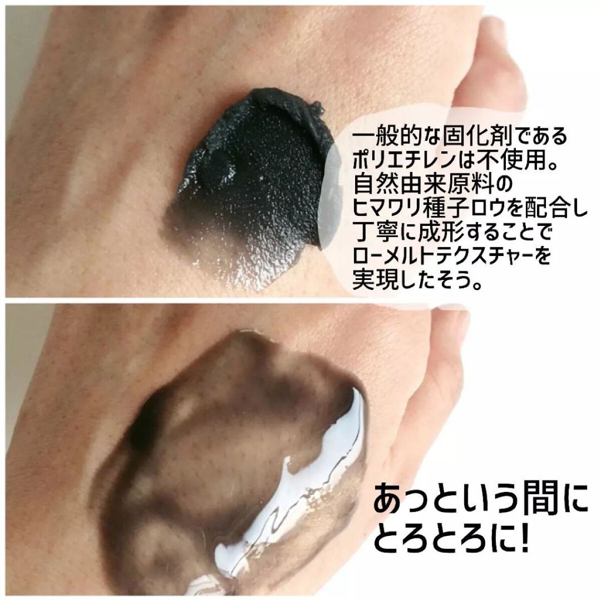 | あっという間に溶けてオイルとクリームの中間みたいになります。溶け残りしづらい👍️ | 詳細を見る |