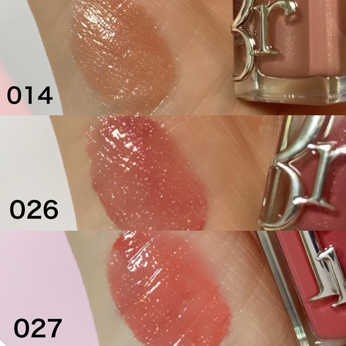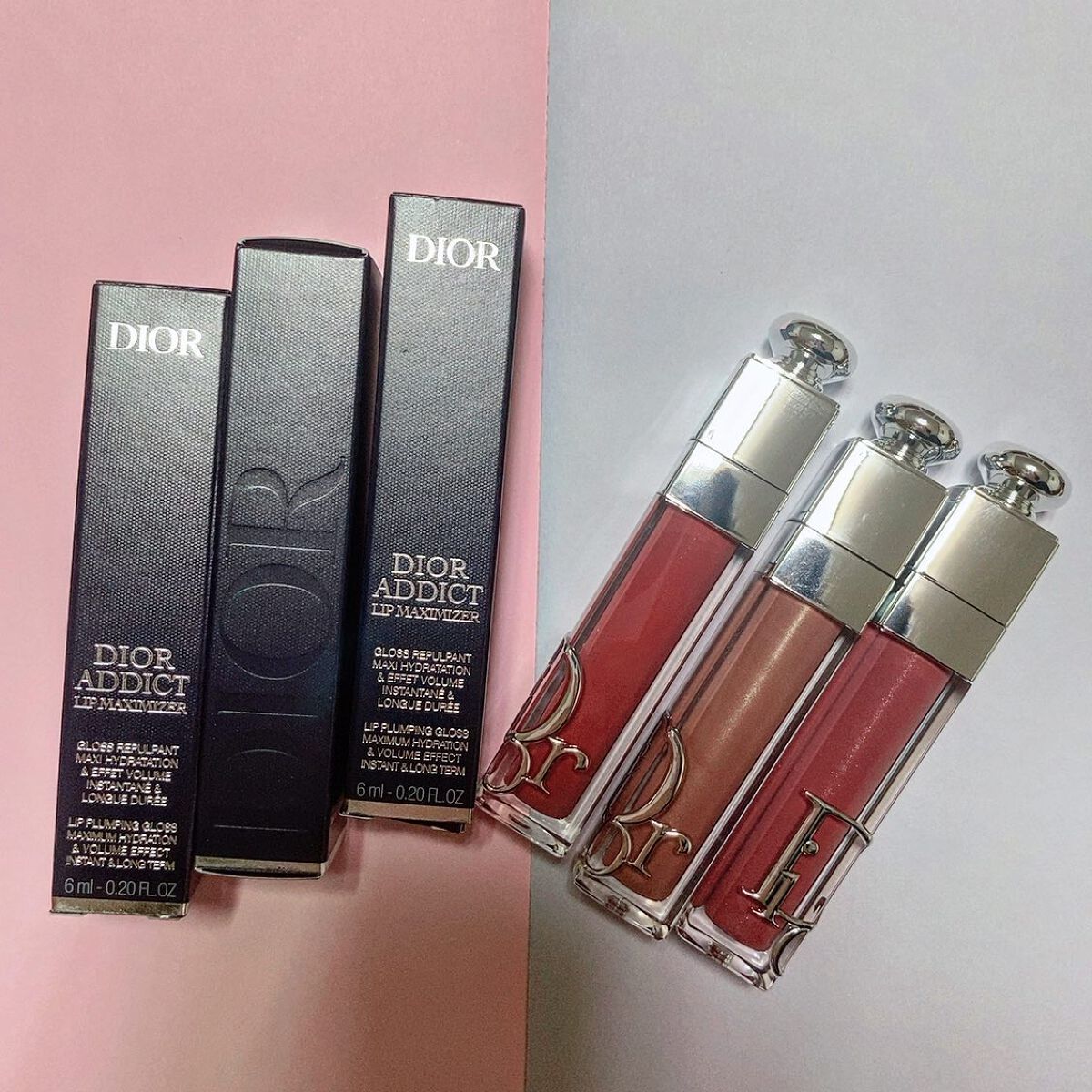 うるおいとふっくらボリュームアップをもたらす大人気のマキシマイザーが自然由来のフォーミュラに進化して登場🥺✨ チェリー オイルとヒアルロン酸をたっぷりと配合した処方は、90%が自然由来成分😳✨ 1日中続く潤いと、あふれる輝きを得て、滑らかでふっくらとボリュームアップした唇を叶えます🙌 新しいディオール アディクト リップ マキシマイザーは、透明感を際立たせるナチュラルなカラーから鮮やかに発色する魅力溢れるシェードでリニューアル🥰 迷わないわけない24色が一気に登場🥹✨マジで悩み過ぎて… 🧡014シマーマカダミア ミルキーベージュ ヌーディーメイクに合わせたくてチョイス💕若干顔色悪く見えるけどww😅 まろやかさを足したい時に重ねて使いたい😊 🧡026 インテンスモーヴ 青みローズモーヴ ブルベさん大得意カラー これは似合うってわかるド定番カラー🤭❤️ 027 インテンスフィグ 粘膜 イチジクカラーにゴールドラメがチラチラしていて綺麗ー😍😍🙌