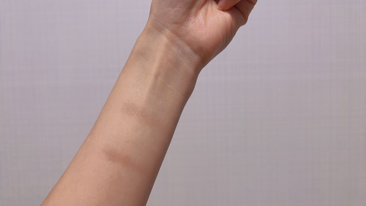 ほんのちょっととって広げるだけで、りんごの🍎甘い香りとキラキラに包まれて幸せ💕 ジェリーと名前にある通り、テクスチャーはこっくりクリーム系でした! しっとりした仕上がりなのでふんわり仕上がります! パウダー系の後に塗るとヨレちゃう気がするので、先にこの子のせてから、仕上げのパウダーするのがよいかもなと思いました⭐️