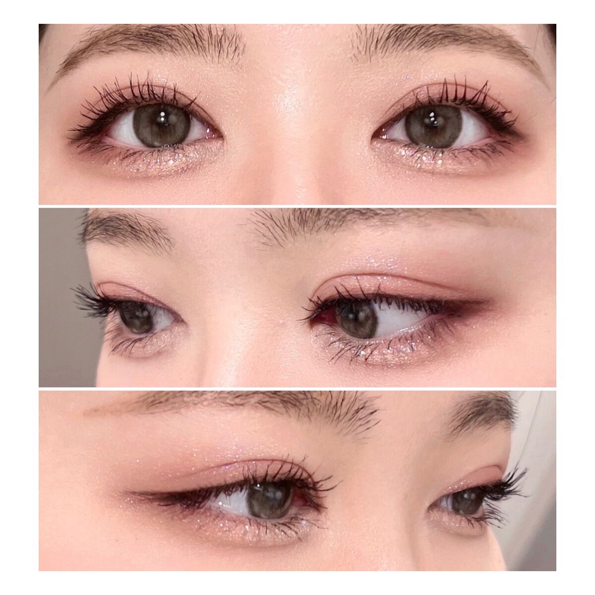 キャンメイクのブロッサムシャワーめちゃめちゃ可愛い〜🥹💖 パッと見て結構オレンジかなぁ?と思ったけど、乗せてみるとちゃんとさくら色🌸 上瞼中央のラメはエレガンスラズルのフラミンゴコッパー🦩 これもキラキラだし本当に可愛い最高! マスカラはミルクタッチのDark Taupeと、アイライナーはキャンメイクのフォギープラム🎀 涙袋はウォンジョンヨのペンシルを使ってみたらしっかりぷっくりしたし、 グリッターはBlingGlowのピンク🙆♀️ このピンクグリッター、しっかりピンクだからうるうるになって可愛いんだよね…🐰💘