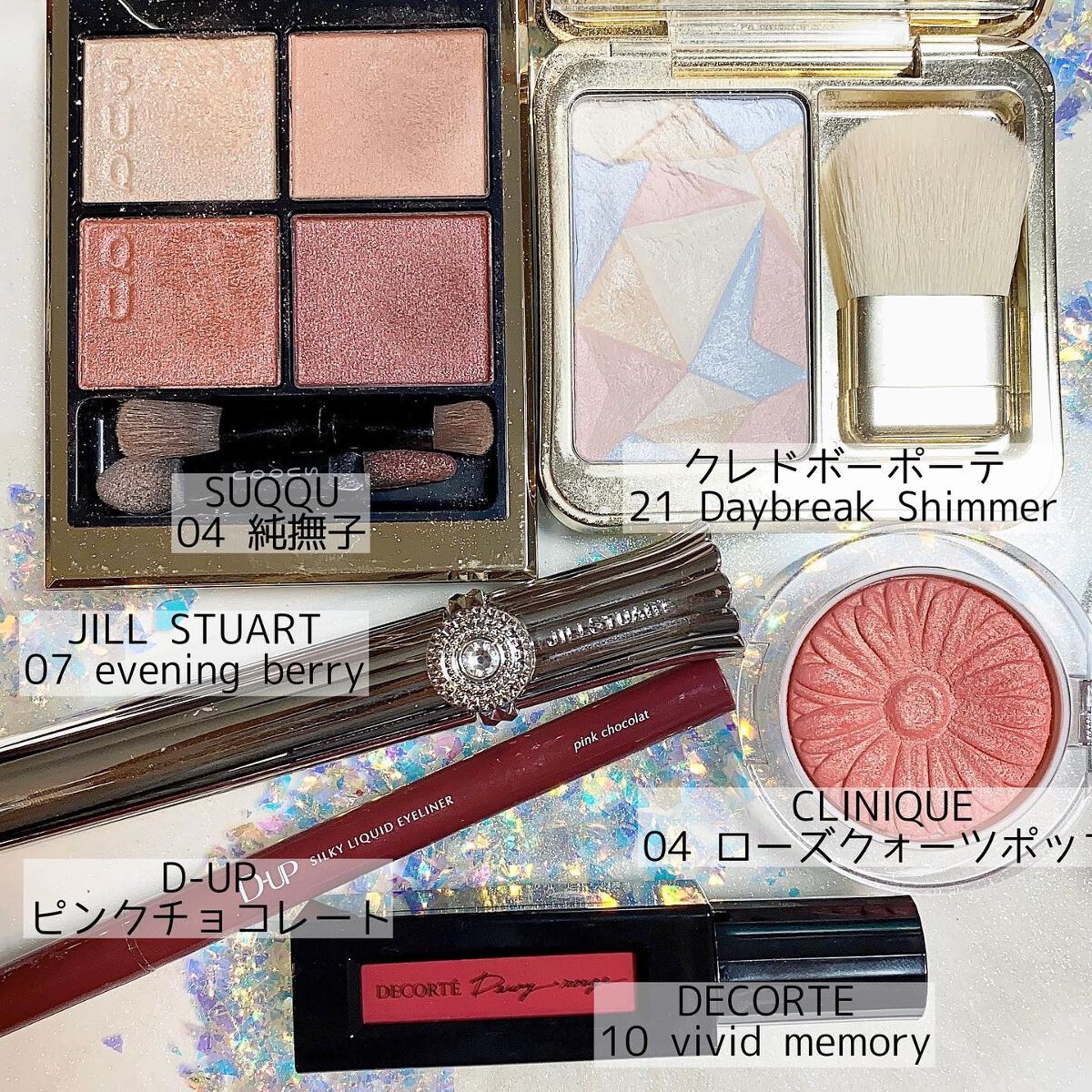 定番の17を愛用していて、こちらはパケもカラーも可愛くて情報解禁した時に即決🥰 予約日の1番に予約しに行きました🎵 表面のキラキラは吹付なので既にとれてしまいましたが、とにかく見た目が可愛いしアイシャドウの仕込みに使っても可愛いとのこと😍 見る度に幸せな気分にさせてくれます🩷 たくさん使ってあげたいなぁ💓