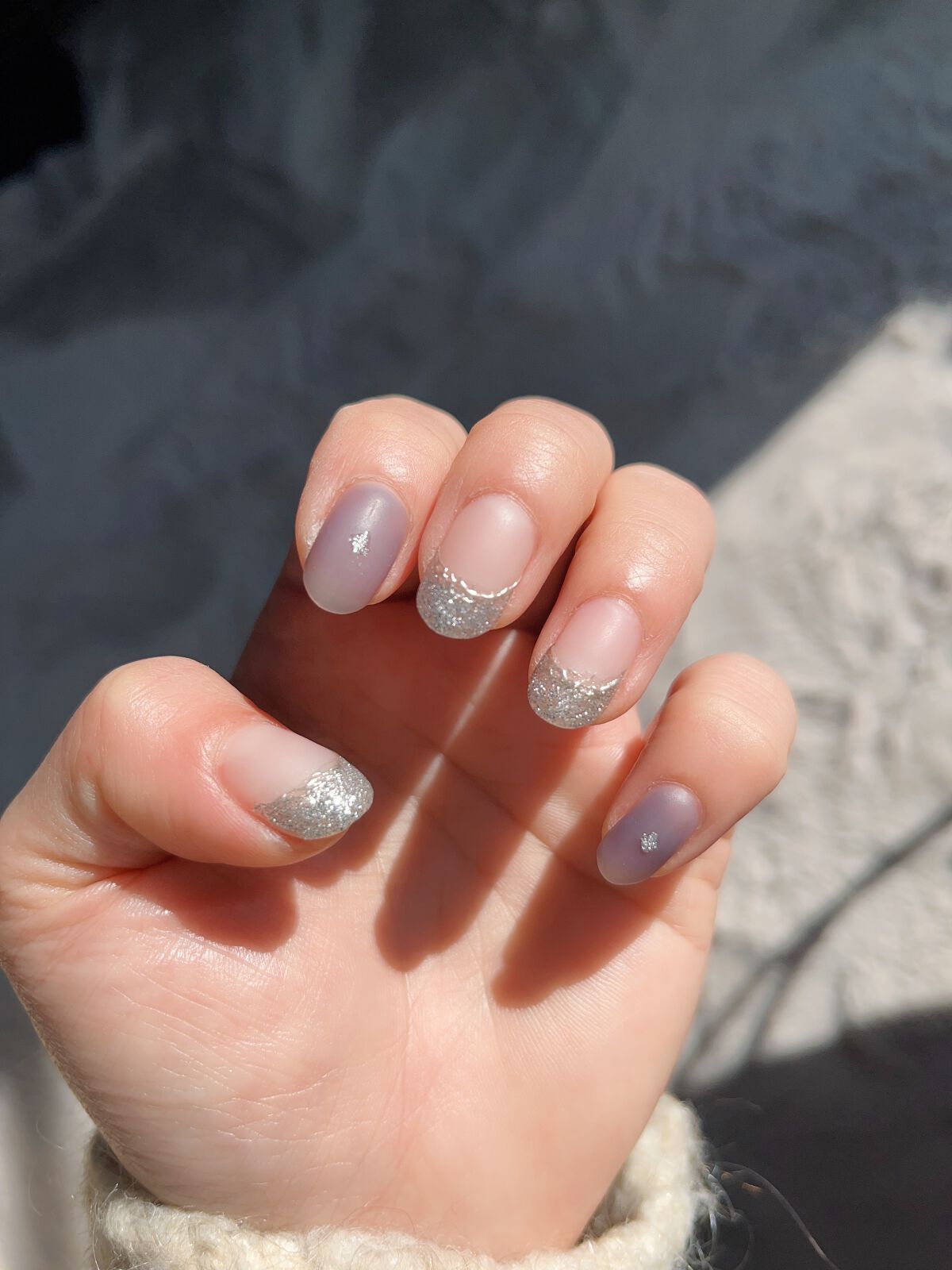 透け感とちゅるん感を求めて薄く2度塗りボルドー♥️ 可愛い色味だから、デザインはシンプルにミラーフレンチ ボルドーの可愛さが伝わる写真がたくさん撮れた(*ˊ˘ˋ*)