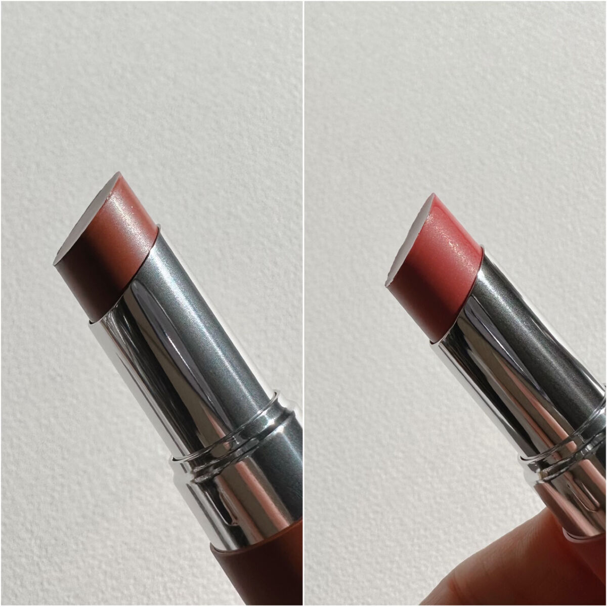 私は01ベージュ、04コーラルピンク目当てで行ったのですが、パッと見で気になったのは 01ベージュ 02ピンクベージュ 04コーラルピンク 01→即決。 02→あー…意外と可愛い… 04→思ったよりピンク味が強く、カラーも鮮やかすぎて唇が浮きました💦 ということで01、02に決定✨ むっちりシアーな発色で、しかもティントだからティッシュオフしても色が定着。 香りもほのかなので酔わない✨ 100・101は限定色。 100のみsold outでした。 100はラメ入りなのですが、私はラメ要らないのであまりそそられませんでした🤗 めちゃくちゃ可愛いのでCheckしてみてください〜❣️