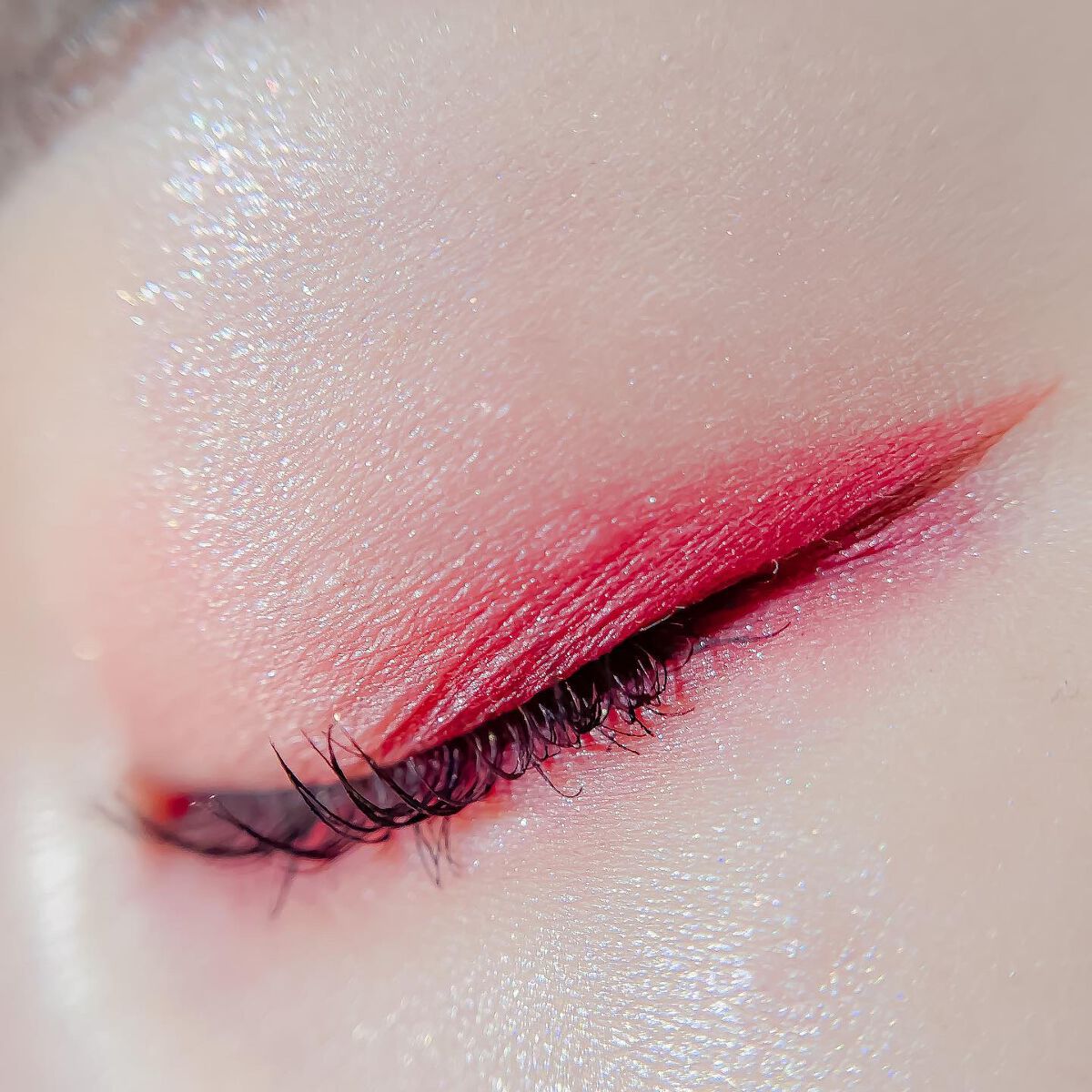 ピンクにグレージュも良いですね👌💗 今日は可愛らしい感じにしてみました💕 上下瞼黒目〜目頭側にラメを塗ってキラキラさせております🤩 目尻はマットのピンクを濃いめに重ねて💗 グレージュのアイライナーと相性◎