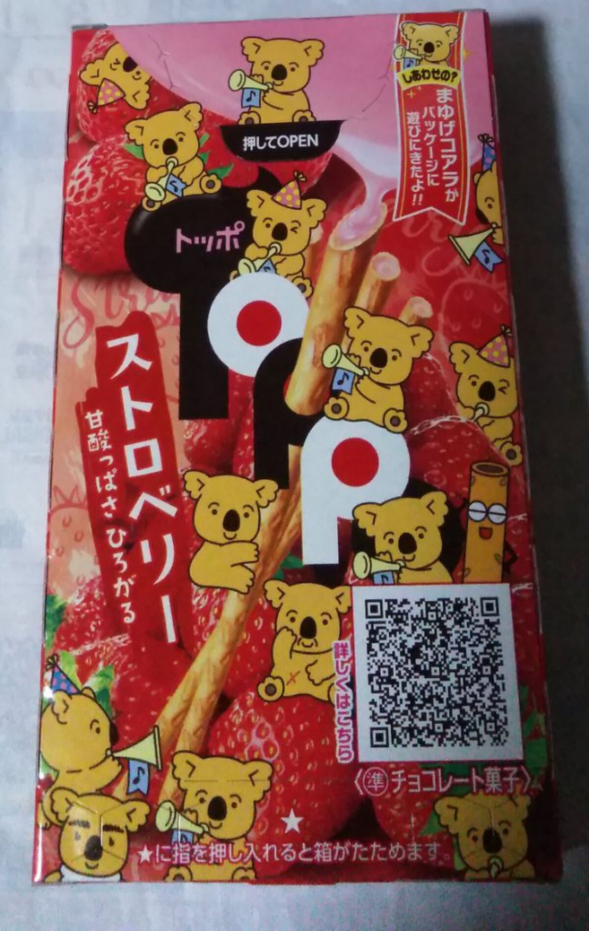 ✂ーーーーーーーーーーーーーーーーーーーー ロッテ トッポ ストロベリー味 箱の裏側がコアラのマーチの絵柄で可愛くてつい購入しました。 トッポ ストロベリー味相変わらず美味しいです。 今度はチョコ味を買おうかなと思います。 ロッテ#トッポ ストロベリー味