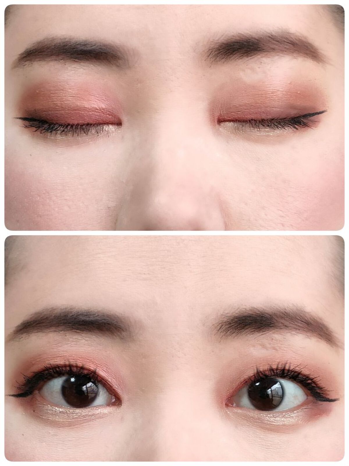 何が、一体、私をそこまで、驚かせたのかと言うと、まずは、この粉質です。 さらには、ベースカラーの、淡いカラーのみならず、きちんと、締め色まで入っており、誰もが使いやすくできた、優秀過ぎる、アイシャドウパレットです。 その締め色のおかげで、淡いアイシャドウカラーが、私の肌色からも浮かず、イエベであるのにも関わらず、まぶたにすんなりと、アイシャドウが馴染んでくれました。 さらに、アイメイクの完成後には、私がイエベであるのにも関わらず、目元の透明感が、ヤバかったのです。 コレは、ブルベさん、イエベさん、関係なく使用できる、かなり優秀な、アイシャドウパレットだと、私は思いました。