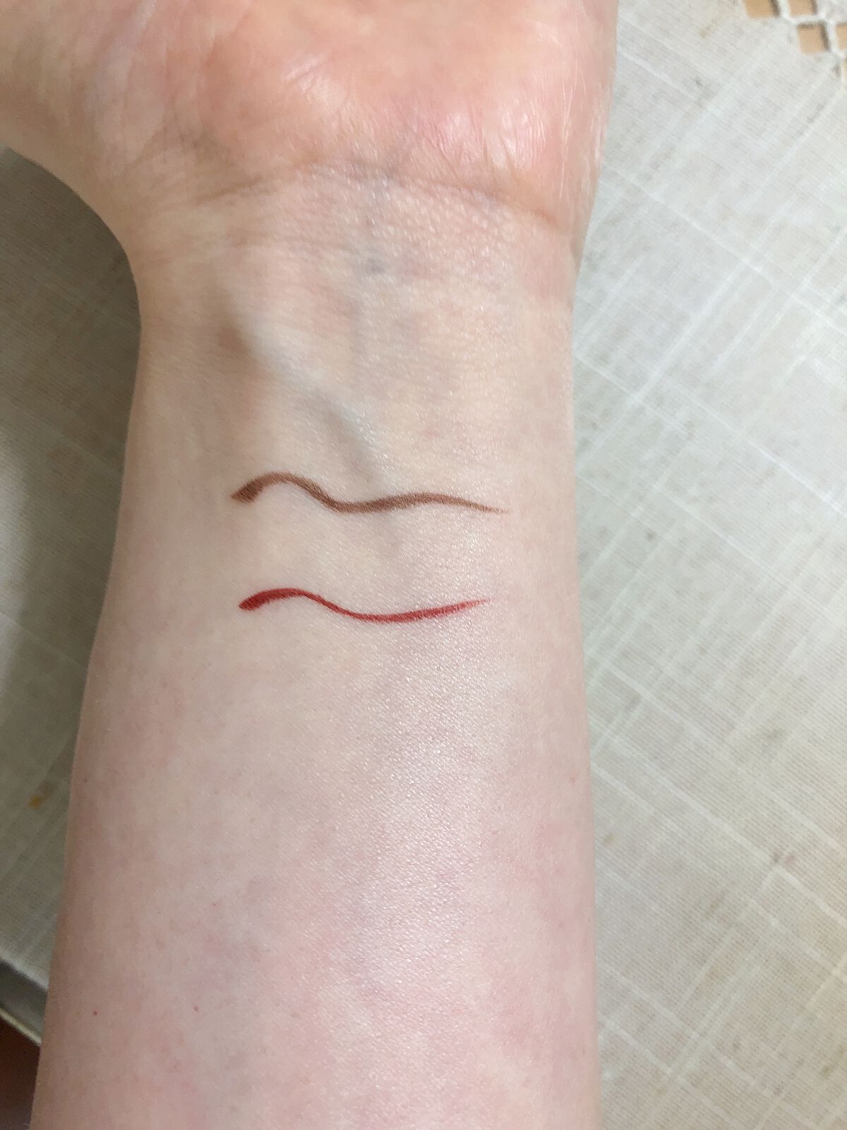 色味が公式と違う感じがしました。公式だとニュートラルなローズピンクという印象でしたが、実際に腕に出してみるとオレンジピンクな色味。 ラメは繊細な輝きで美しく、密着力がありました!ラメだけ単体で発売して欲しいくらい。 私個人としては合わなかったというだけなので、ご参考までに。