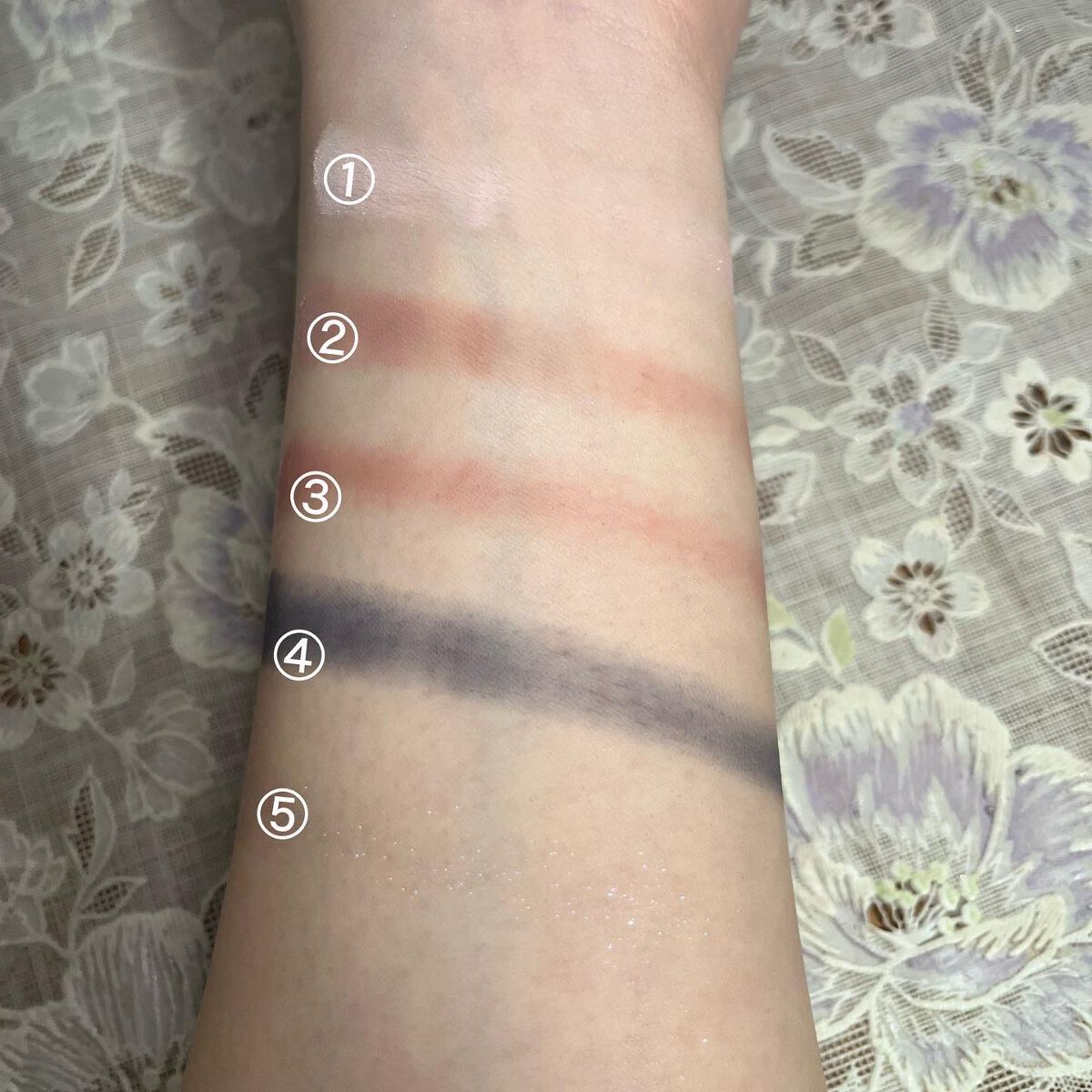 ラメをメインにしたくてあえて目尻にだけパープル💜 ポイントで使うとケバくならないし程よく透明感が出るからおすすめ◎ ③のラメがさらさらなのにラメ飛びしなくて抜群に使いやすい◎ マスカラはバーガンディ👀 ラインはブラウンでナチュラルに仕込んでみた! チークもパープルにしたけどほんのり薄くのせる程度! 底見え拡大してきた!!嬉しい😆 リップはフィグフィグ💋