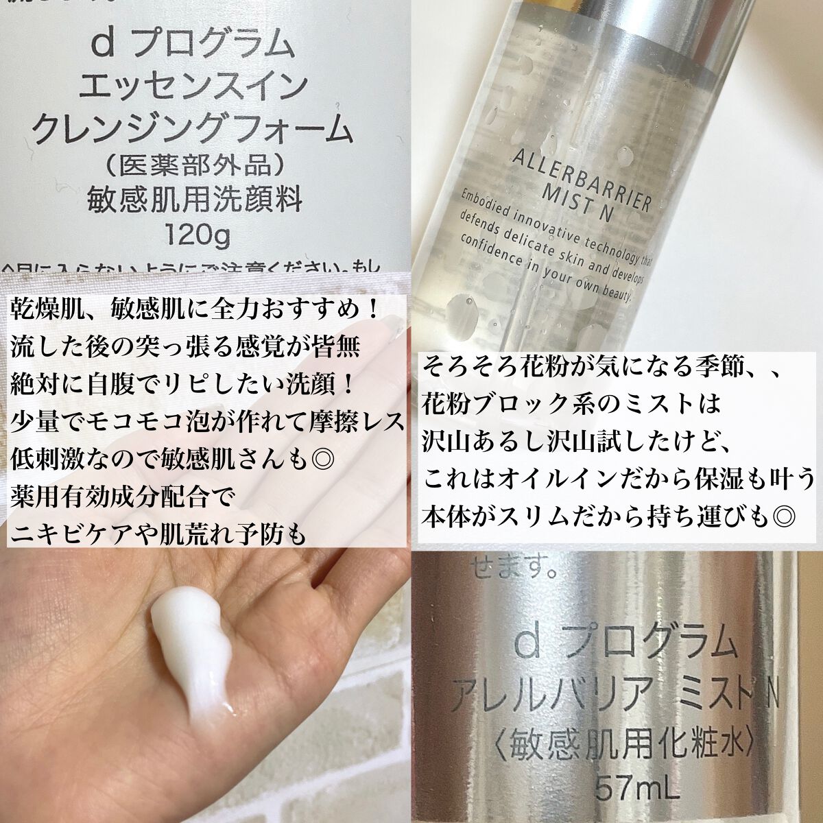.dprogram*モイストケアローション*アレルバリアミスト*エッセンスインクレンジングフォーム花粉の時期の強い味方〜〜💪🏻♡花粉症じゃなくても肌荒れしやすい時期!肌をなめらかにしてくれるこの3種試してみたよ🙏🏻アレルバリアミストは花粉やほ...
