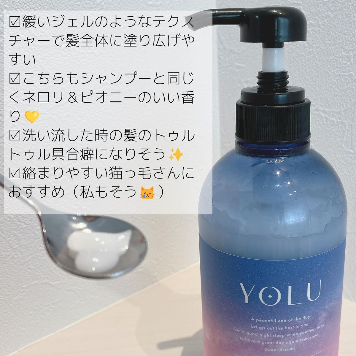 YOLUカームナイトリペアシャンプー/トリートメント@yolu_official様からいただきお試ししましたオシャレなパッケージダメージリスクは日中だけでなく、夜にも髪と地肌の濃密ナイトケアで、しっとりうるツヤ髪へナイトキャップ処方で睡眠中の...