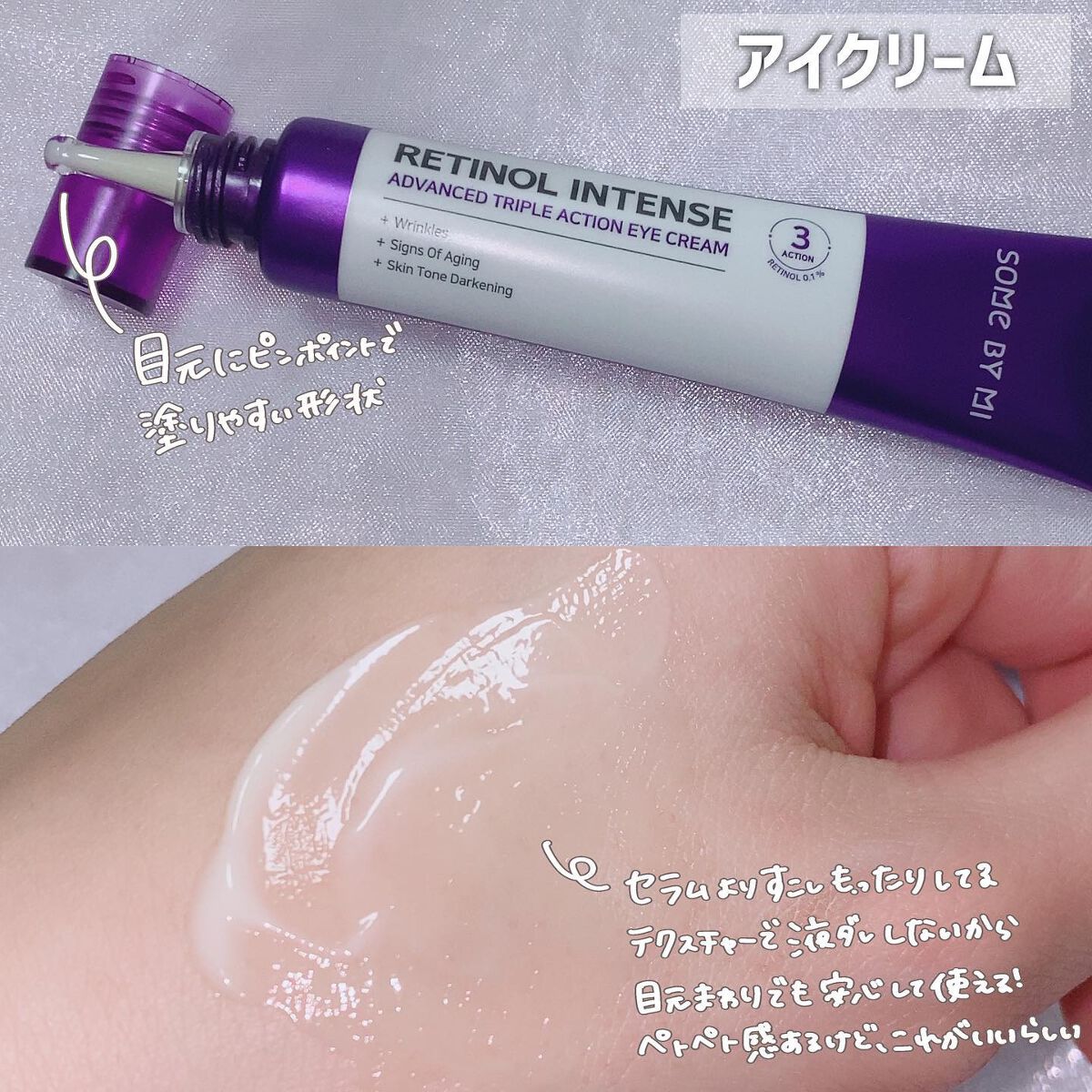 サムバイミーは、トラブル肌、敏感肌に注意を注いでいるスキンケアブランド☝️ そんなサムバイミーが作った、レチノール入りのアイクリームって👀⤴️⤴️ レチノール0.1%+グルタチオン配合で、レチノール入りなのに初心者でも使いやすい😆 クリーム色の、滑らかなクリーム状テクスチャー😌 チューブの先が細く、少量も出しやすいし目元ケアしやすい⤴️