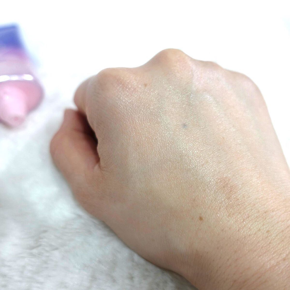 華やかな良い香り。肌に出した時は普通の下地の色なのに伸ばしていくとパール感のあるツヤツヤ肌に。 トーンアップもしてくれて肌を綺麗に魅せてくれるそれだけじゃなくしっとり感もあり。 冬場は乾燥で化粧が崩れやすいのでとってもありがたいプライマー。