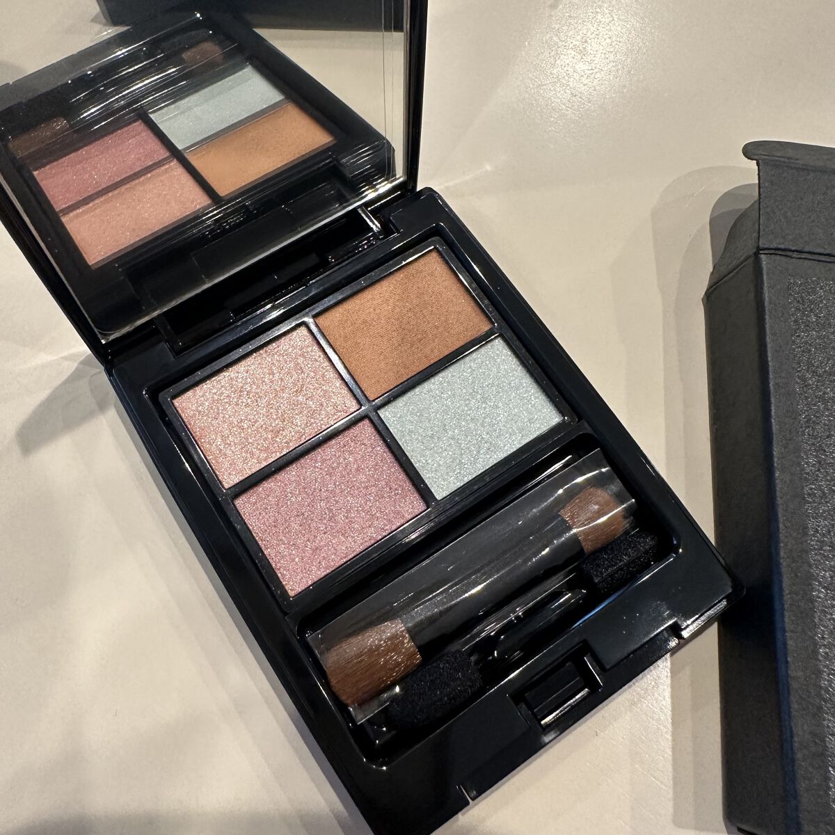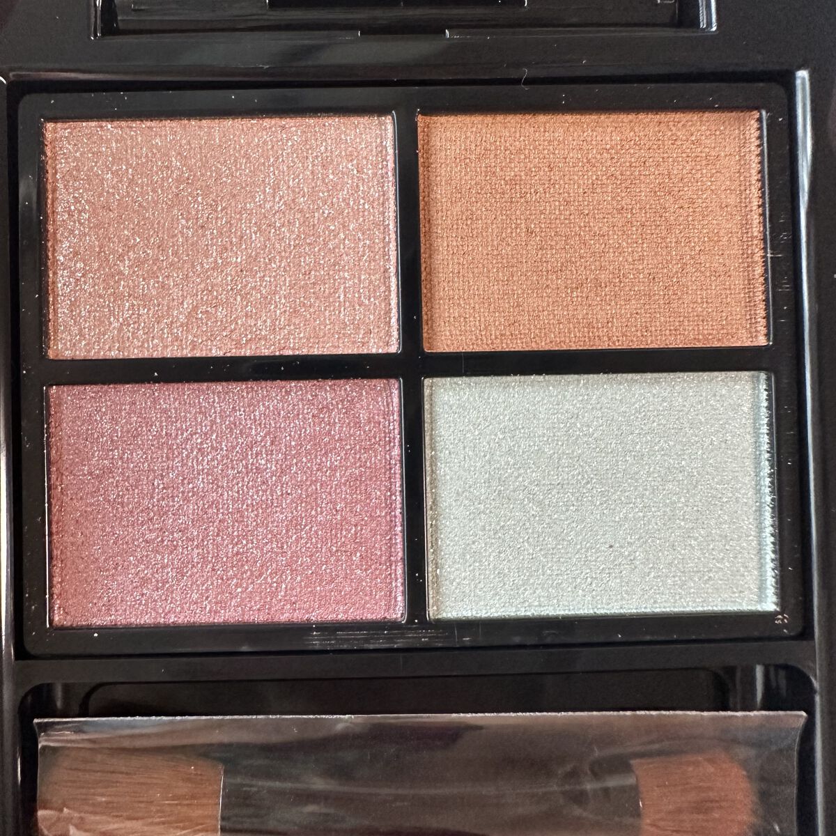 サンク クルール クチュールになってから初めて購入しました❤️ これは情報出た時に欲しいと思ったパレット🎨 上2色がキラキラで可愛いのはもちろん、 左上の可愛さがたまりません! 左下の赤が目を引きますが、瞼にのせると発色は薄めなので好みに調節しやすいです👍 右下は私はアイラインのように使うか、アイブロウに使ってます✨ 真ん中は瞼にのせると私は似合わなかったので、ノーズシャドウとアイブロウにしてます😥 右上は指乗せがおすすめです❤️