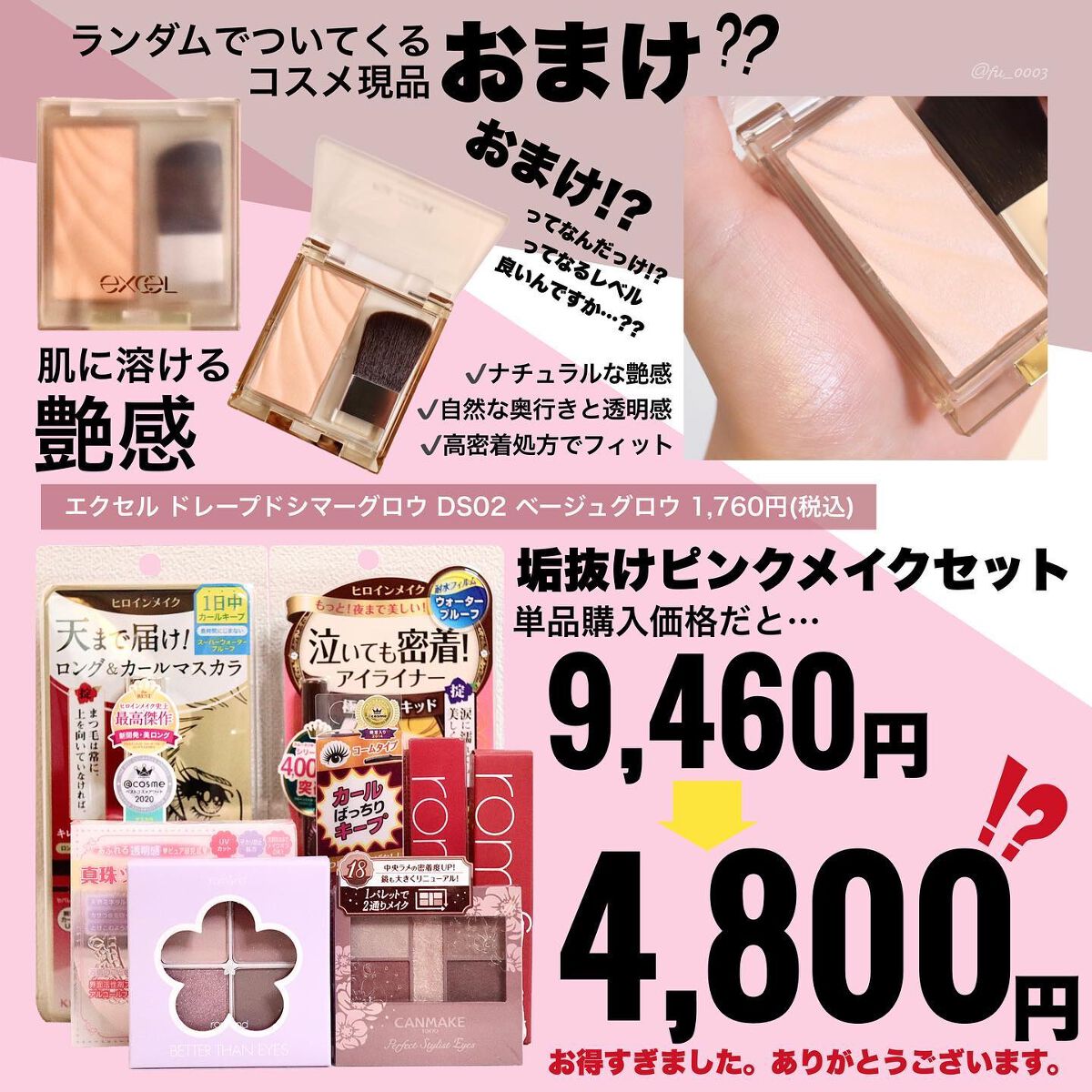 - LIPSがセレクトした、ピンクメイクのコスメセット。コスメを詰め合わせたお得なセットです。さらにセット内容にプラスして、ランダムでセット商品購入特典も付いてくる!どんな商品が入っているかは、届いてからのお楽しみ。このセットだけで、垢抜けピンクメイクが完成します。 ■商品の中身について セット内容についてのお問い合わせにはお応えできかねます。あらかじめご了承ください。 ■注意事項 数に限りがございますので、売り切れの際はご容赦ください。 お客様のご都合による返品・交換は承っておりません。破損・汚損などがあった場合は、交換対応をさせていただきます。交換をご希望される場合は、お届け日から7日以内に弊社カスタマーサポートまでご連絡ください。