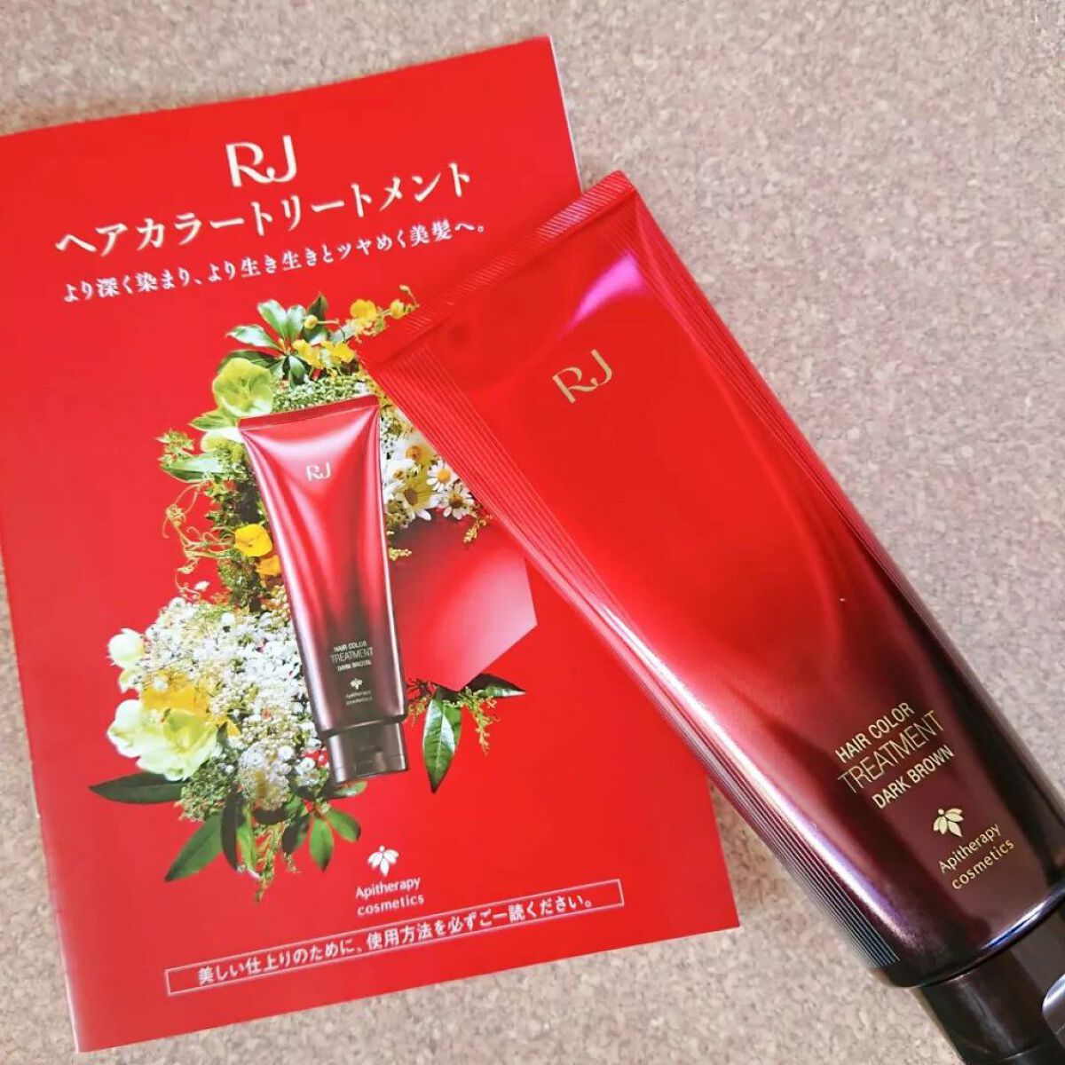 山田養蜂場の、アピセラピーコスメティクスよりRJヘアカラートリートメント ご紹介✨️ 色はダークブラウン 使い方は簡単で、シャンプー後、ビニール手袋して手に取り白髪部分に塗ってちょっと放置。 ヘアカラーなのにトリートメントも出来るのはポイント高め 白髪染めでお悩みの方は是非(*^^*)