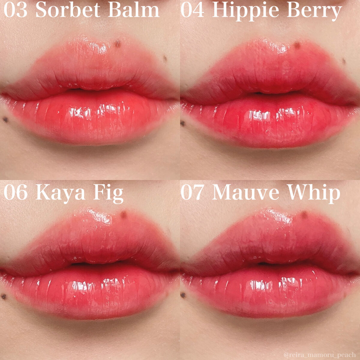 - <01 ココヌード(Coco Nude)> リンゴ酸ジイソステアリル、ダイマージリノール酸ダイマージリノレイルビス(ベヘニル/イソステアリル/フィトステリル)、トリイソステアリン酸ポリグリセリル-2、ビスジグリセリルポリアシルアジペート-2、パラフィン、トリメリト酸トリトリデシル、テトライソステアリン酸ペンタエリスリチル、マイクロクリスタリンワックス、イソステアリン酸ソルビタン、1,2-ヘキサンジオール、ジステアルジモニウムヘクトライト、合成ワックス、酸化チタン、(エチレン/プロピレン)コポリマー、酸化鉄、炭酸プロピレン、香料、赤104(1)、リモネン、リナロール、ホホバ種子油、アーモンド油、アンズ核油、月見草油、オリーブ果実油、アルガニアスピノサ核油、シア脂、ツバキ種子油、トリ(カプリル/カプリン酸)グリセリル、マンゴー果実エキス、カニナバラ果実エキス <02 ラヴィーピンク(Lovey Pink)> リンゴ酸ジイソステアリル、ダイマージリノール酸ダイマージリノレイルビス(ベヘニル/イソステアリル/フィトステリル)、トリイソステアリン酸ポリグリセリル-2、ビスジグリセリルポリアシルアジペート-2、パラフィン、トリメリト酸トリトリデシル、テトライソステアリン酸ペンタエリスリチル、マイクロクリスタリンワックス、イソステアリン酸ソルビタン、1,2-ヘキサンジオール、ジステアルジモニウムヘクトライト、合成ワックス、酸化チタン、(エチレン/プロピレン)コポリマー、赤104(1)、黄5、炭酸プロピレン、赤202、香料、リモネン、リナロール、ホホバ種子油、アーモンド油、アンズ核油、月見草油、オリーブ果実油、アルガニアスピノサ核油、シア脂、ツバキ種子油、トリ(カプリル/カプリン酸)グリセリル、マンゴー果実エキス、カニナバラ果実エキス <03 ソルベバーム(Sorbet Balm)> リンゴ酸ジイソステアリル、ダイマージリノール酸ダイマージリノレイルビス(ベヘニル/イソステアリル/フィトステリル)、トリイソステアリン酸ポリグリセリル-2、ビスジグリセリルポリアシルアジペート-2、パラフィン、トリメリト酸トリトリデシル、テトライソステアリン酸ペンタエリスリチル、マイクロクリスタリンワックス、イソステアリン酸ソルビタン、1,2-ヘキサンジオール、ジステアルジモニウムヘクトライト、合成ワックス、酸化チタン、赤104(1)、(エチレン/プロピレン)コポリマー、酸化鉄、黄5、炭酸プロピレン、香料、リモネン、リナロール、アルガニアスピノサ核油、シア脂、ツバキ種子油、トリ(カプリル/カプリン酸)グリセリル、アーモンド油、アンズ核油、月見草油、オリーブ果実油、ホホバ種子油、マンゴー果実エキス、カニナバラ果実エキス <04 ヒッピーベリー(Hippie Berry)> リンゴ酸ジイソステアリル、ダイマージリノール酸ダイマージリノレイルビス(ベヘニル/イソステアリル/フィトステリル)、トリイソステアリン酸ポリグリセリル-2、ビスジグリセリルポリアシルアジペート-2、パラフィン、トリメリト酸トリトリデシル、テトライソステアリン酸ペンタエリスリチル、マイクロクリスタリンワックス、イソステアリン酸ソルビタン、1,2-ヘキサンジオール、ジステアルジモニウムヘクトライト、合成ワックス、赤104(1)、黄5、(エチレン/プロピレン)コポリマー、赤202、炭酸プロピレン、酸化鉄、酸化チタン、香料、リモネン、リナロール、ホホバ種子油、アーモンド油、アンズ核油、月見草油、オリーブ果実油、アルガニアスピノサ核油、シア脂、ツバキ種子油、トリ(カプリル/カプリン酸)グリセリル、カニナバラ果実エキス、マンゴー果実エキス <05 ヌガーサンド(Nougat Sand)> リンゴ酸ジイソステアリル、ダイマージリノール酸ダイマージリノレイルビス(ベヘニル/イソステアリル/フィトステリル)、トリイソステアリン酸ポリグリセリル-2、ビスジグリセリルポリアシルアジペート-2、パラフィン、トリメリト酸トリトリデシル、テトライソステアリン酸ペンタエリスリチル、マイクロクリスタリンワックス、イソステアリン酸ソルビタン、酸化チタン、1,2-ヘキサンジオール、ジステアルジモニウムヘクトライト、合成ワックス、黄4、(エチレン/プロピレン)コポリマー、酸化鉄、炭酸プロピレン、赤202、香料、リモネン、青1、リナロール、シア脂、ツバキ種子油、トリ(カプリル/カプリン酸)グリセリル、アルガニアスピノサ核油、ホホバ種子油、アーモンド油、アンズ核油、月見草油、オリーブ果実油、マンゴー果実エキス、カニナバラ果実エキス <06 カヤフィグ(Kaya Fig)> リンゴ酸ジイソステアリル、ダイマージリノール酸ダイマージリノレイルビス(ベヘニル/イソステアリル/フィトステリル)、トリイソステアリン酸ポリグリセリル-2、ビスジグリセリルポリアシルアジペート-2、パラフィン、トリメリト酸トリトリデシル、テトライソステアリン酸ペンタエリスリチル、マイクロクリスタリンワックス、イソステアリン酸ソルビタン、1,2-ヘキサンジオール、酸化チタン、ジステアルジモニウムヘク
